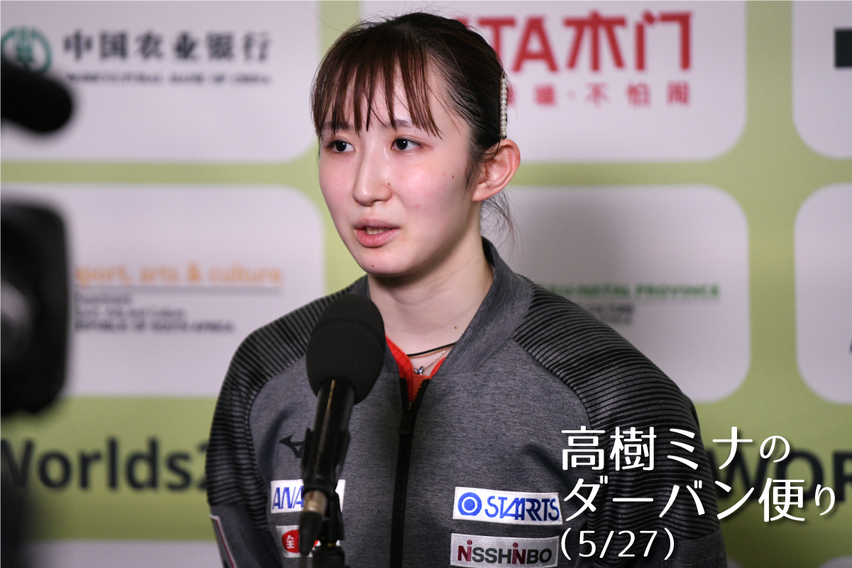 大会8日目の5月27日は日本勢男女を通じて唯一、シングルス4強に入った早田ひな(日本生命)が決勝進出をかけ、女子世界ランキング1位の孫穎莎(中国)と準決勝で対決。