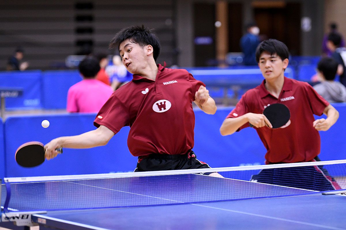 2023年(令和5年度)関東学生卓球選手権大会が6月14〜16日に所沢市民体育館で開催された。男子ダブルスは濵田一輝(写真左)/徳田幹太(早稲田大学)が初優勝を遂げた。