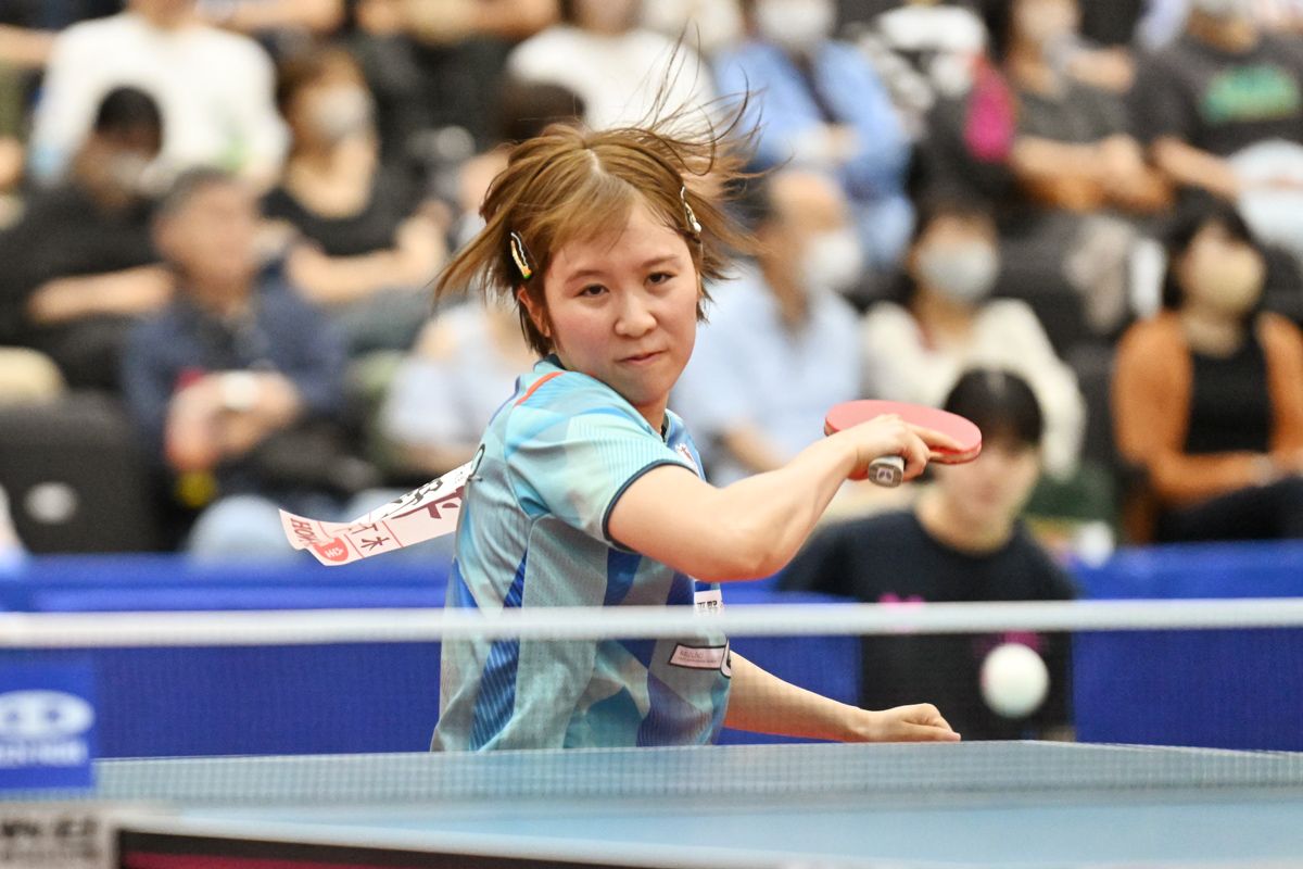 パリ五輪選考レースを独走する世界卓球2023ダーバン銅メダリストの早田ひな(日本生命)は、初戦で山室早矢(桜丘高校)のカットをストレートで打ち抜くと、準々決勝では芝田沙季(ミキハウス)とのラリー戦を持ち前の球威で制し、順当にベスト4入りを果たした。