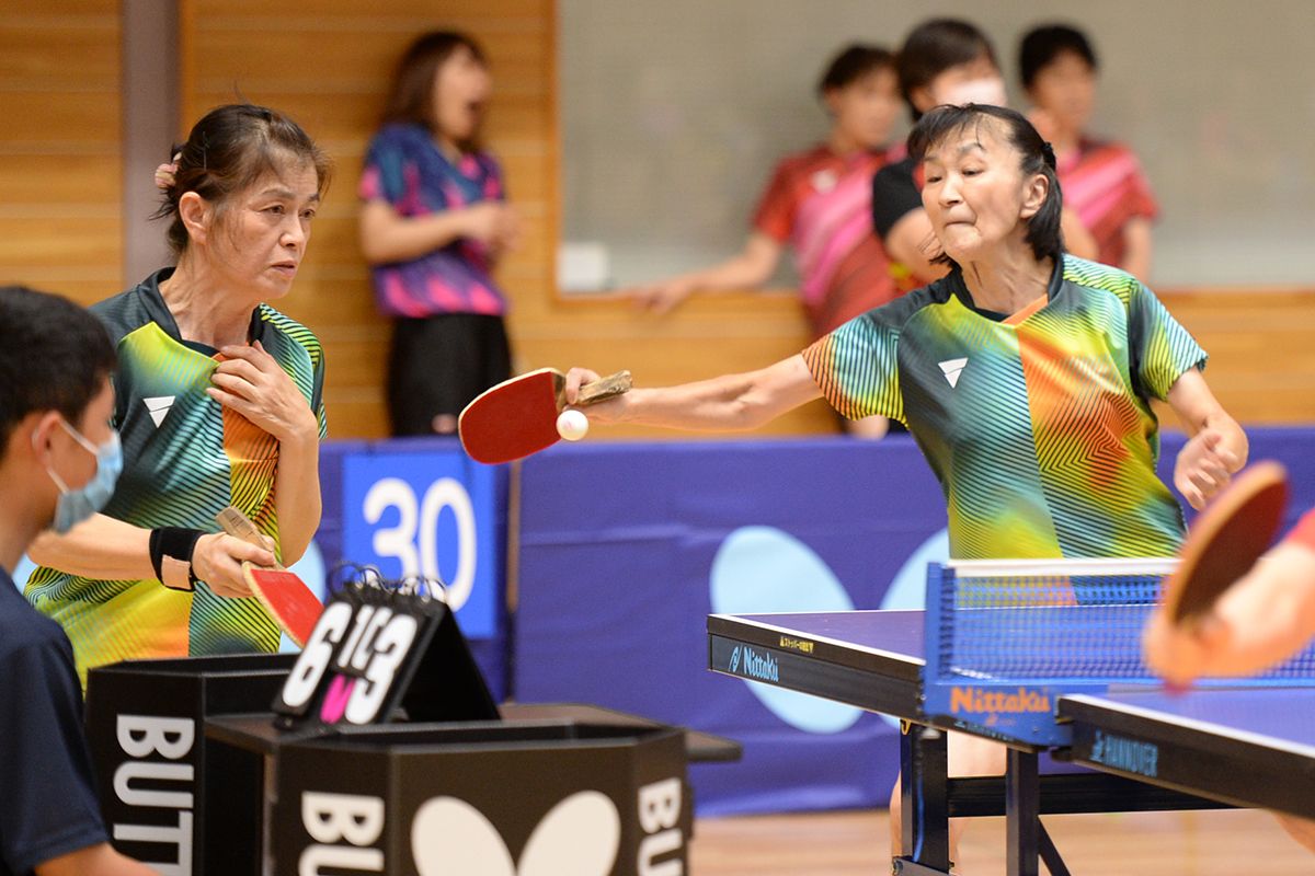 ダブルスC(60~109歳)は圧倒的な攻撃力を持つ川島・大津(丸亀SC、香川)が前回女王の貫禄を見せ、準々決勝進出を決めた。