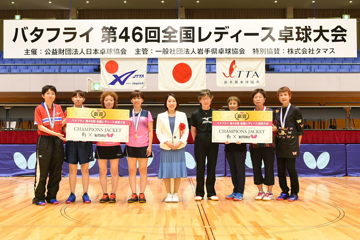 2023年7月22~23、岩手・奥州市総合体育館Zアリーナで「バタフライ 第46回全国レディース卓球大会」が開催。大会最終日の7月23日は各種目の決勝トーナメントが行われ、団体戦とダブルスの日本一が決定した。