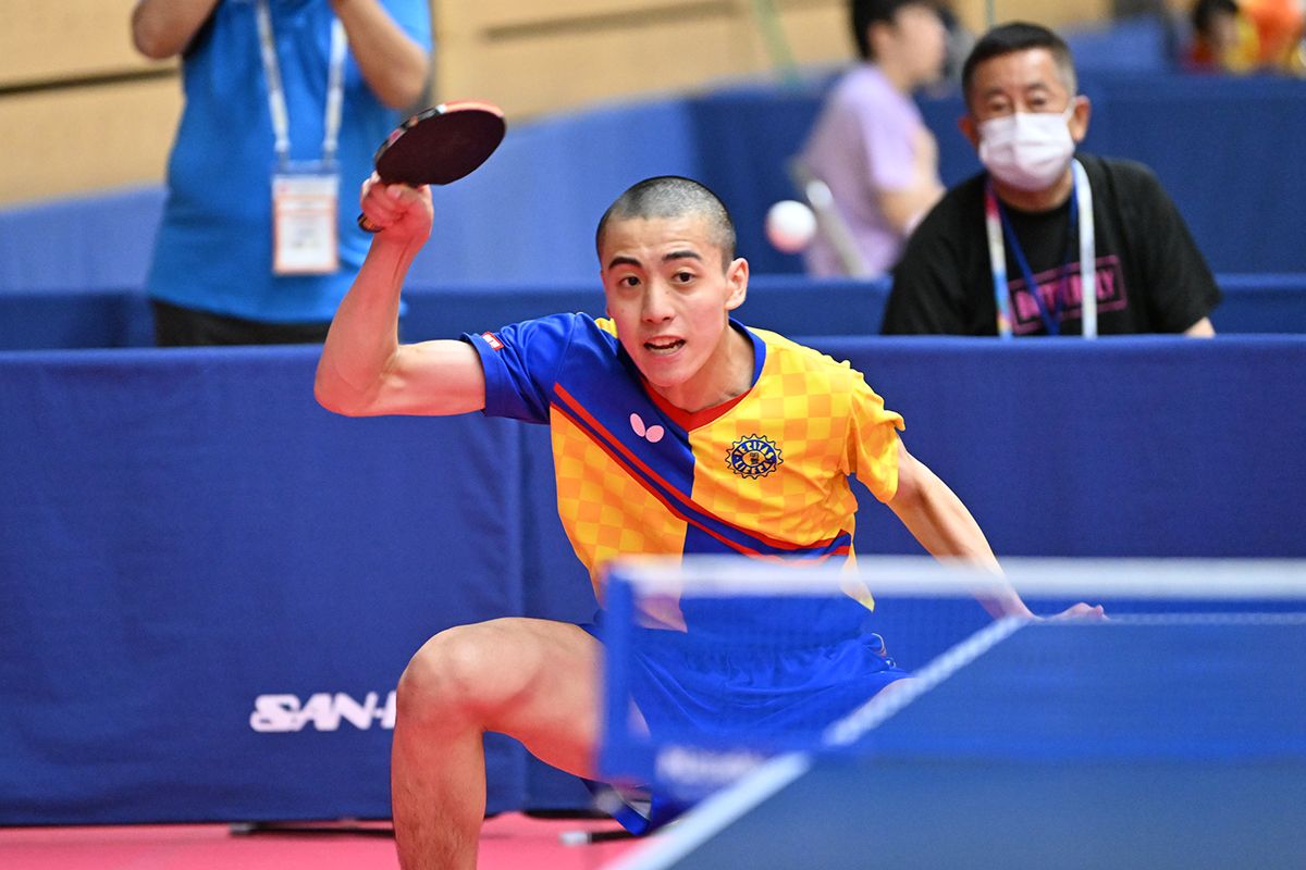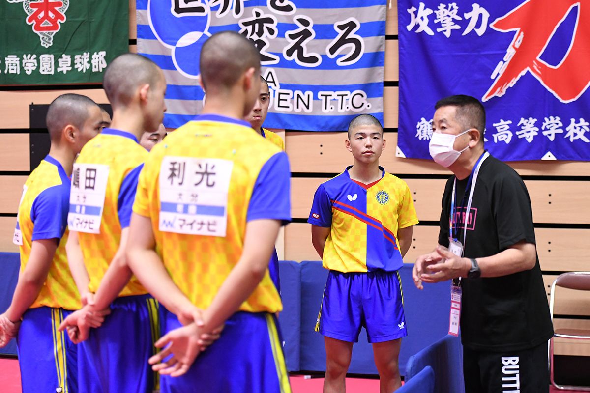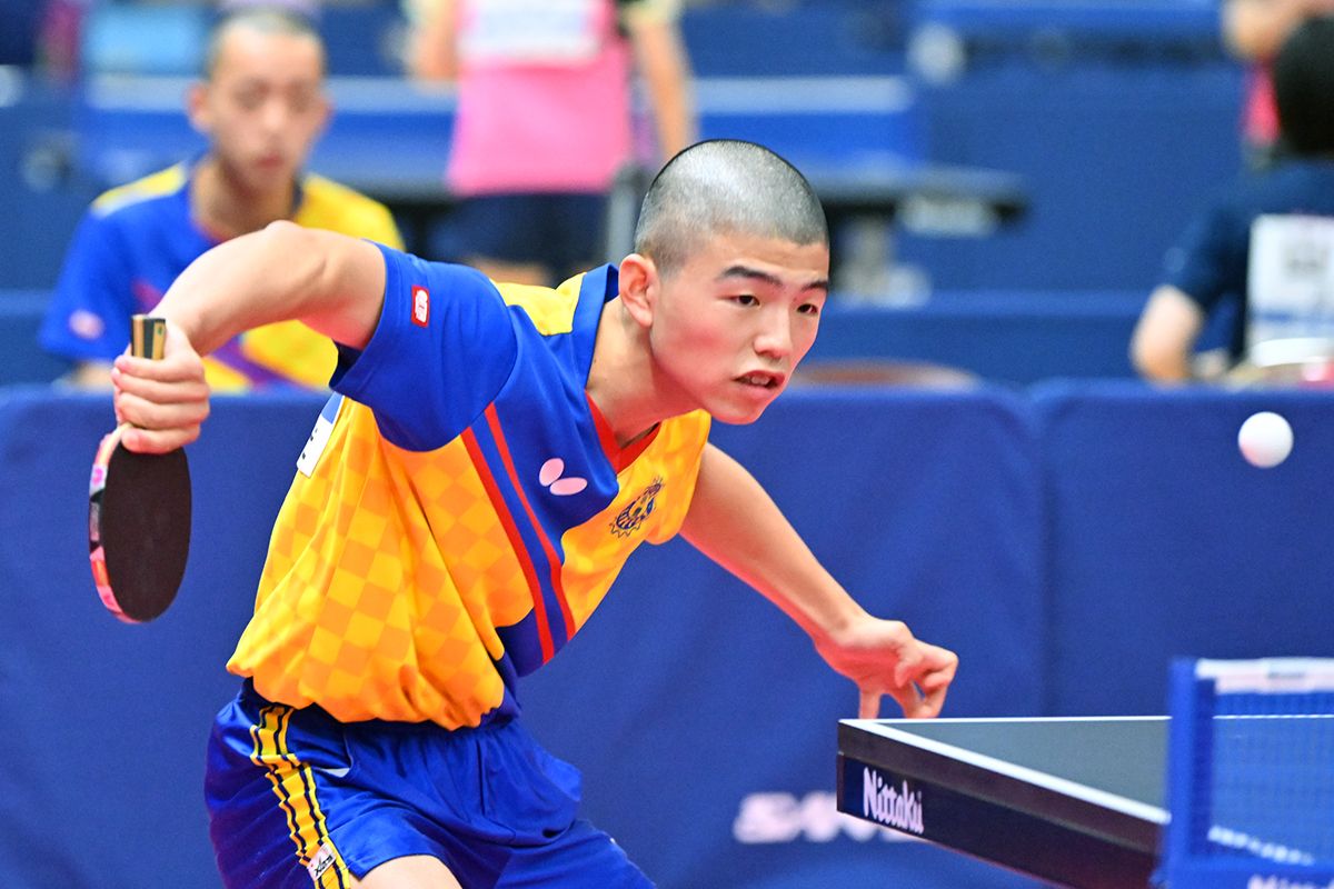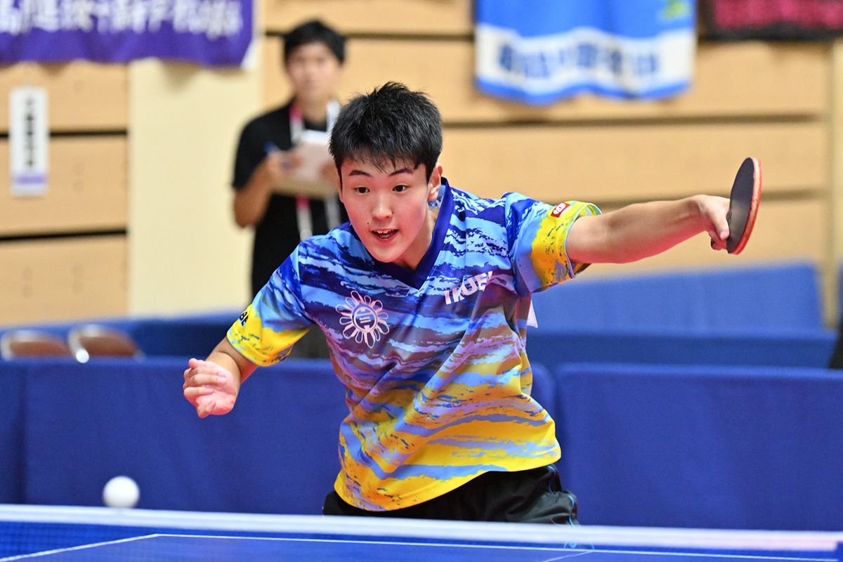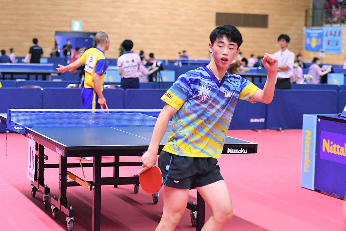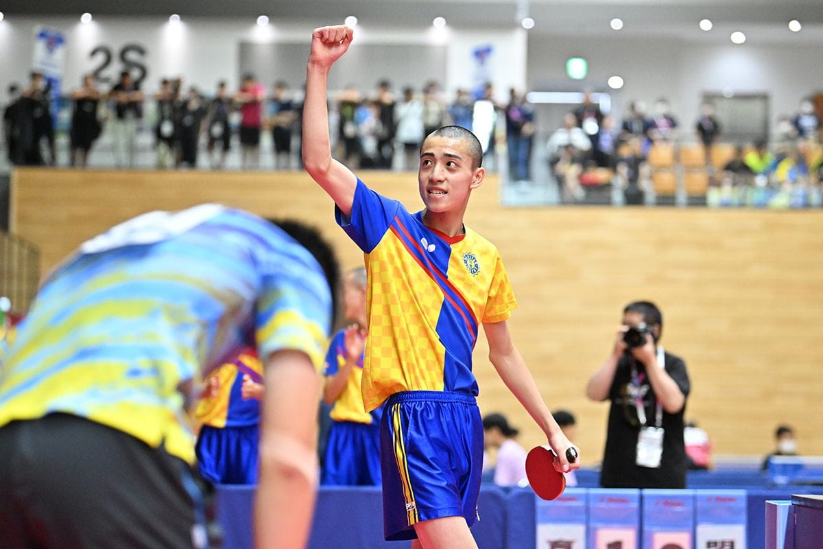 2台進行の4番、5番は4番で岡田空が、二井原有真の切れ味鋭い両ハンドに敗れるが、5番で野田学園戦のラストでも勝った高橋拓己が、育英キャプテンの髙橋慶太をサービスから崩してストレートで退け、決勝進出を決めた。