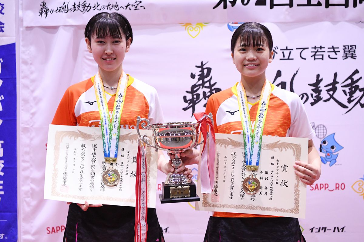 3位には、学校対抗でもチームの要として活躍した岩木仁香/桧山夏望 (横浜隼人)と、前陣での攻守が光った佐藤有紗/東川羽菜(宇都宮文星)が入った。