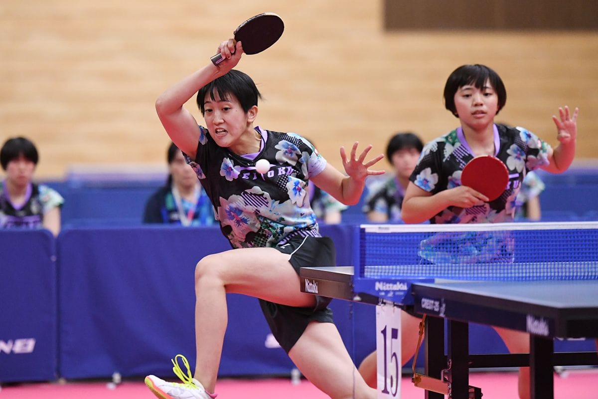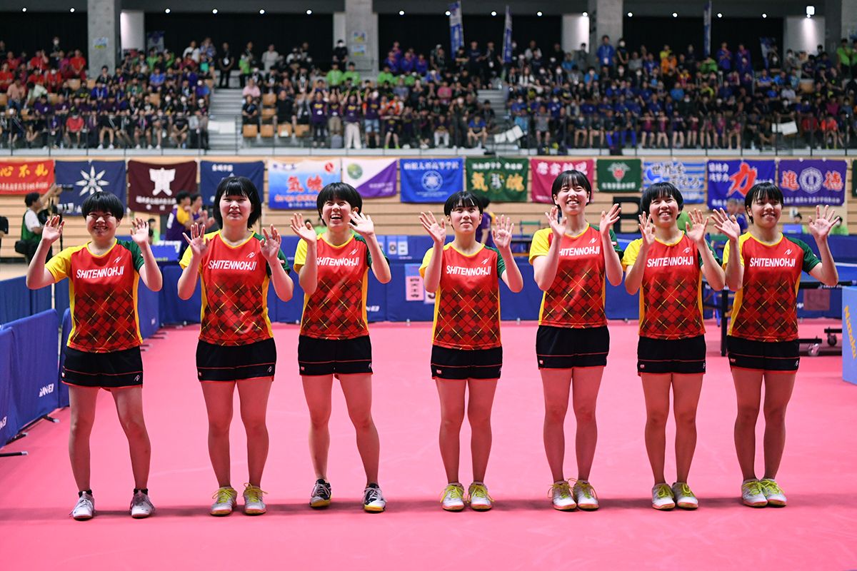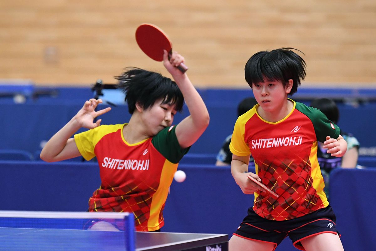 四天王寺の牙城をなんとか揺るがしたい明徳義塾は、これまで組んできた上田/水野瑞希に変え、水野と渡邉心葉をペアリングしてきたが、四天王寺は動じなかった。ここまでチームを支えてきた藤田知子/伊藤詩菜の両ハンドの連係が決勝の舞台でいっそうさえ、明徳義塾ペアにストレートで勝利。四天王寺が1ゲームも落とさず優勝を決め、2013年から続く連覇を10に伸ばした。