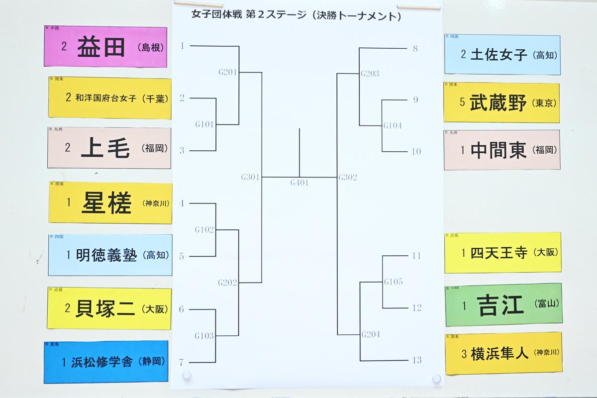 女子団体は、大きな波乱はなく強豪校が順当に第2ステージ(決勝トーナメント)に勝ち進んだ。