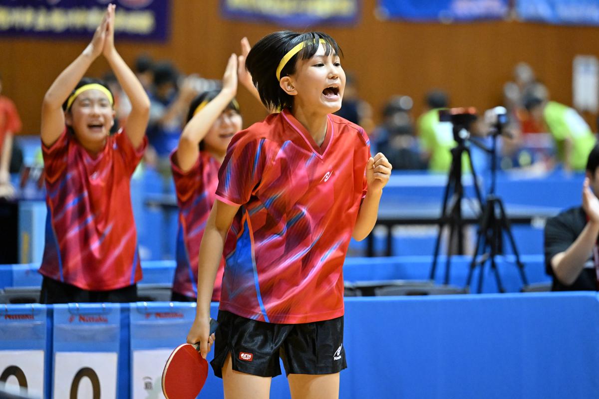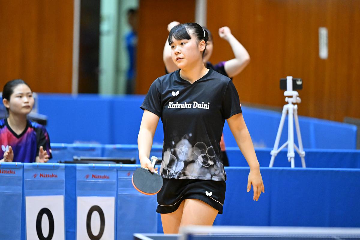 このほか、益田は和洋国府台女子と2対2の接戦となったが、ラストで1年生の松下愛菜が3年生の平野杏奈を気迫のこもったプレーで破り、昨年ベスト8の益田が4強に返り咲いた。