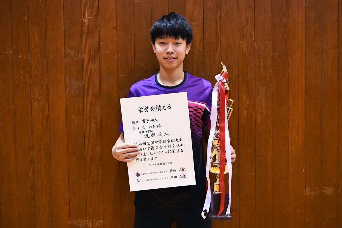 最大のライバルを退けたことで肩の力が抜けた渡部は、決勝で佐々木を持ち味の切れ味鋭い両ハンドで押し込み、ストレート勝利。中学生最後の夏に念願の栄冠を手にした。