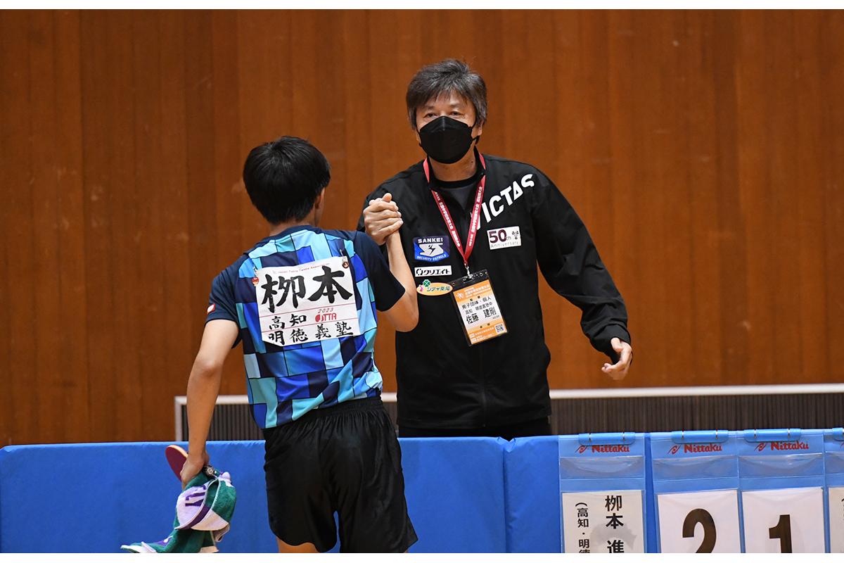 2位の佐々木は、ラリー戦に抜群の強さを見せて、準々決勝で球威のある中城、準決勝では今大会のシンデレラボーイ・栁本に打ち勝って決勝進出。渡部には質の高い両ハンドで攻め込まれ、なかなか勝機を見いだせなかったが、男子団体優勝に続きシングルスでも決勝進出と、佐々木にとっては躍進の夏になったことだろう。