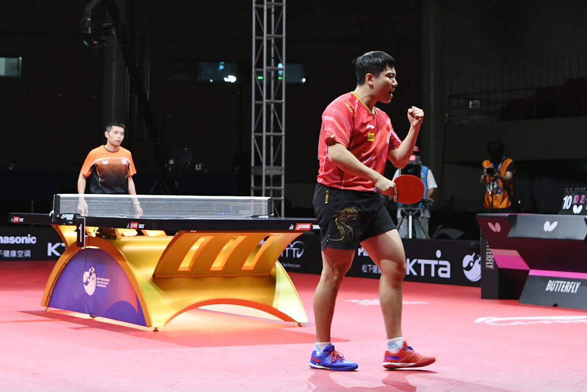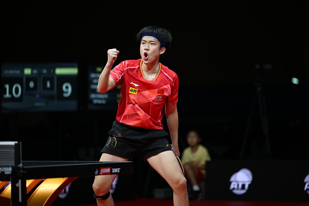 トップの王楚欽対高承睿は、地力の差で王楚欽が圧倒するかと思われたが、試合は予想を裏切る大接戦になった。高承睿は多彩なバックハンドと思い切りのいいフォアハンドで第1ゲームを先制すると、第2ゲームは9-6から惜しくも逆転で落とすが、王楚欽を相手に堂々のプレーで第3ゲームも奪い、勝利に王手をかける。しかし、世界卓球のファイナリストとして新鋭に負けるわけにはいかない王楚欽が、第4ゲームから高承睿のフォア側をうまく突きながら威力のある両ハンドにつなげ、なんとか逆転勝利。予定通りというにはあまりにも際どかったが、先制点を中国にもたらした。