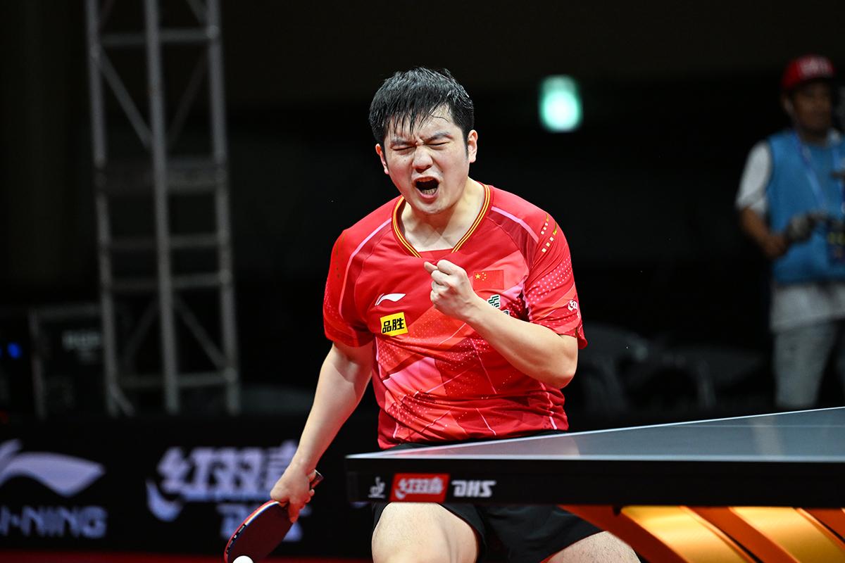 樊振東が1点を返し、9-10とした場面。ここで決めてしまいたい林昀儒は、この場面でこれまで何度も樊振東のネットミスを誘っていたロングサービス気味の下回転がかかったサービスを樊振東のバック側に出し、勝負をかけてきた。このサービスは返せないのではないか。そう思った刹那、樊振東はのけぞるようにしてバックハンドドライブを相手コートへまさにねじ込み、林昀儒のミスを誘って10-10に追い付く。窮地をしのいだことで息を吹き返した樊振東と、絶対的優位な立場から追い付かれた林昀儒の差は明白で、ジュースから樊振東が2本連取し、激闘にピリオドを打つと同時に、逆転で中国に王手をもたらした。