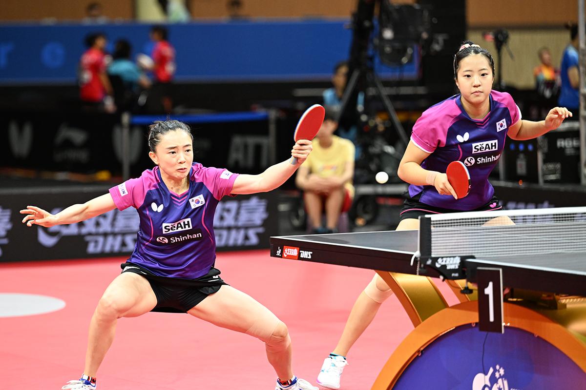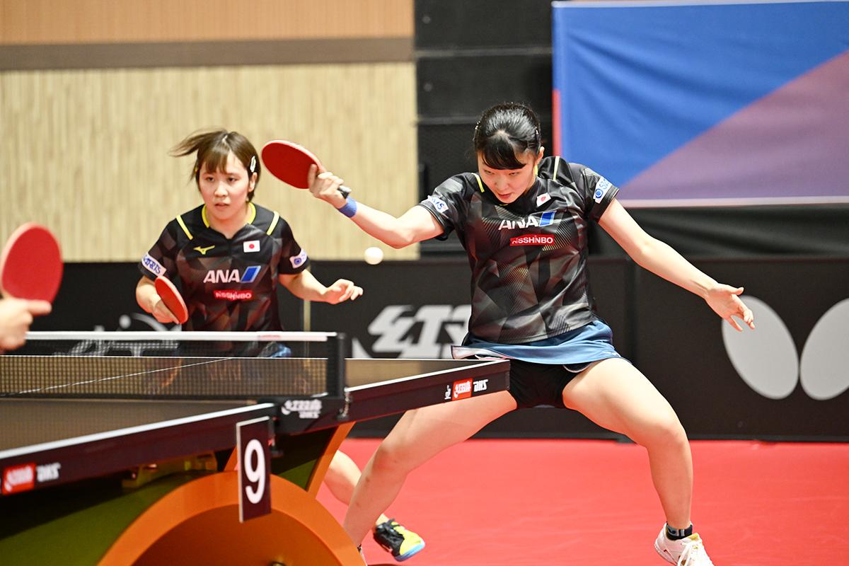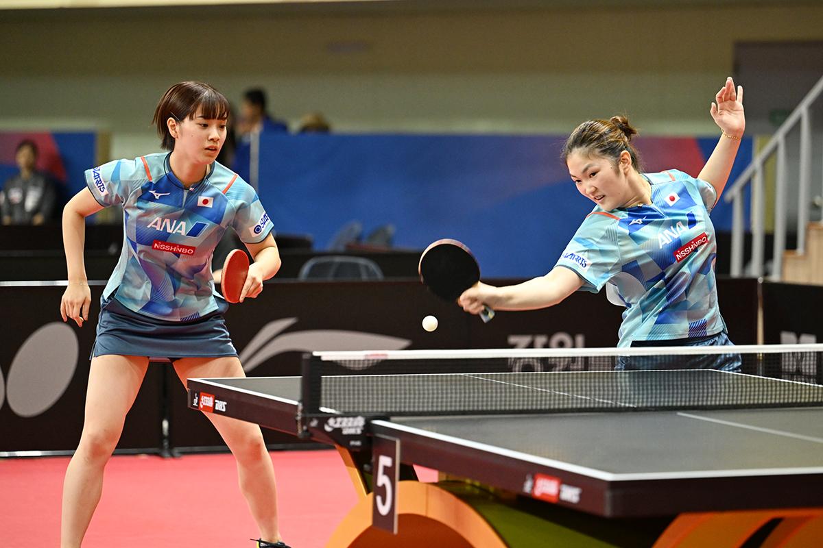 平野美宇/張本美和は李皓晴/李清韻(香港)と対戦。ラリー巧者の香港ペアと打ち合いになるが、要所で強打を決めて8強入り。準々決勝では、孫穎莎/王芸迪(中国)とメダルをかけて対戦する。