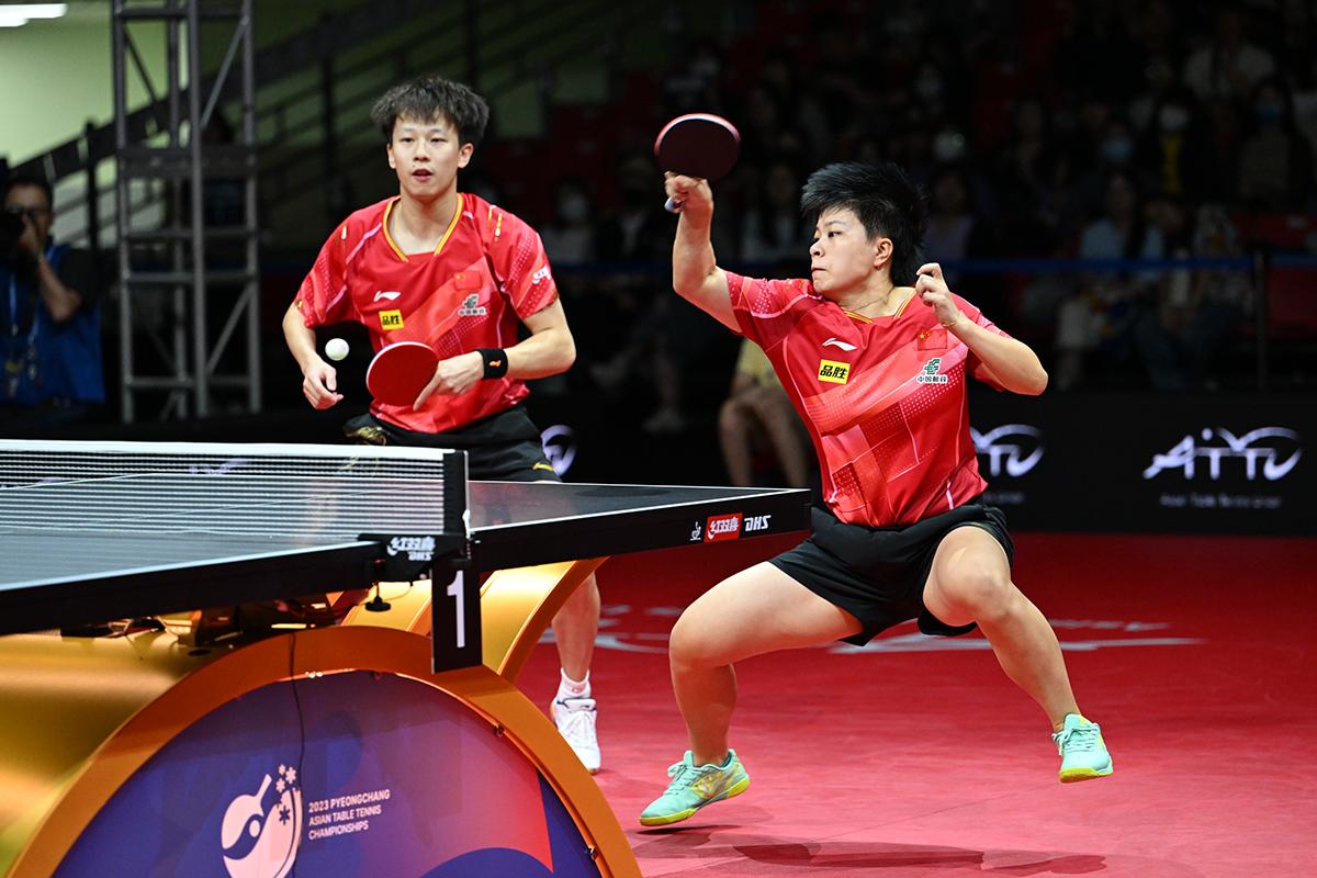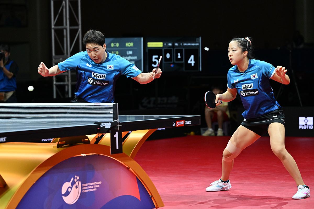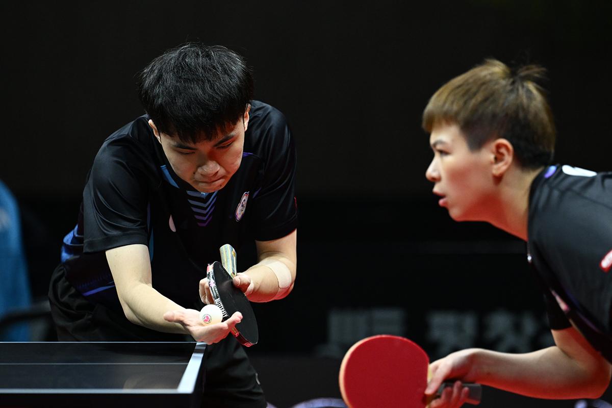 もう一方の準決勝は、梁靖崑/銭天一(中国)が、第2シードの林鐘勳/申裕斌(韓国)をストレートで下し、決勝進出。銭天一が正確で鋭い両ハンドでチャンスをつくり、梁靖崑がさらに押し込むプレーで地元期待の韓国ペアを完封した。