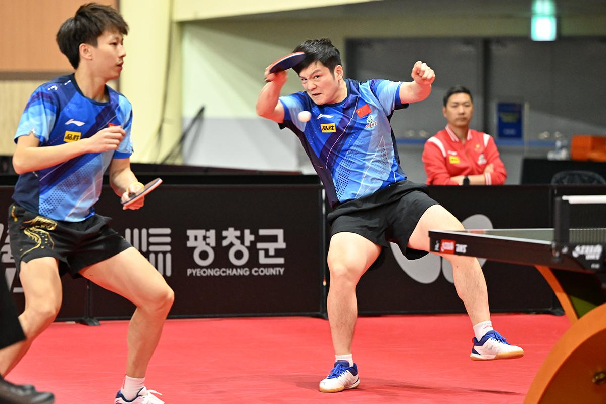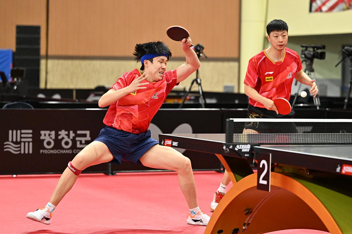 馬龍/王楚欽(中国)は、黄鎮廷/何鈞傑(香港)の思い切った攻めに第1ゲームを失うが、第2ゲーム以降は地力の差を見せて勝ちきった。