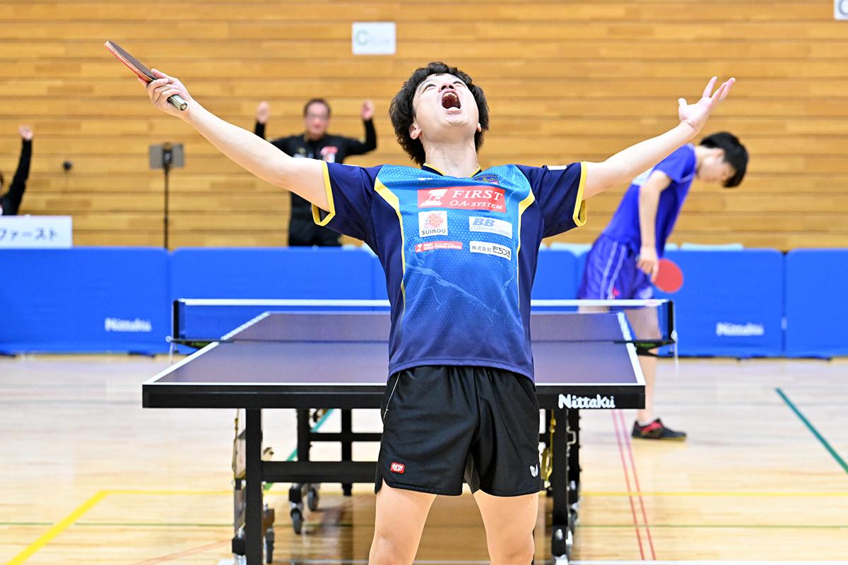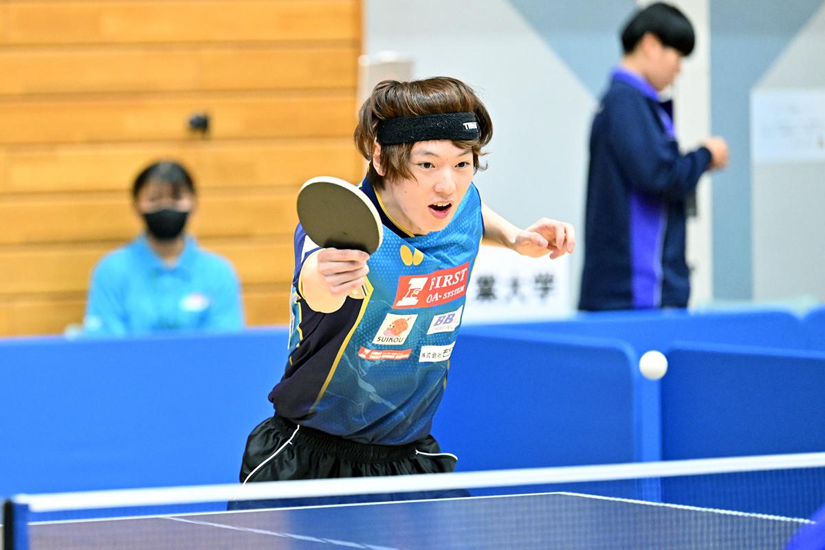 ファーストは、明治大に競り勝って4強に入った。戸上隼輔、宇田幸矢が不在の中、宮川昌大、松田歩真を中心に明治大も奮戦したが、髙木和卓、大矢秀俊、松平健太の青森山田トリオの巧みなプレーと気迫の前に一歩及ばず。