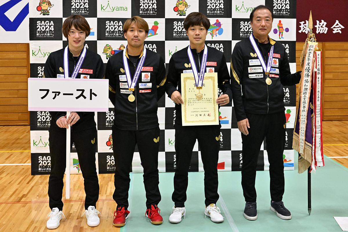 高木和卓、大矢英俊、松平健太とメンバー全員が元日本代表という歴戦の猛者たちをそろえたオーダーで、準決勝ではインターハイ王者の愛工大名電高、決勝ではインカレ王者の愛知工業大と若手の挑戦をはねのけ、栄冠をつかんだ。