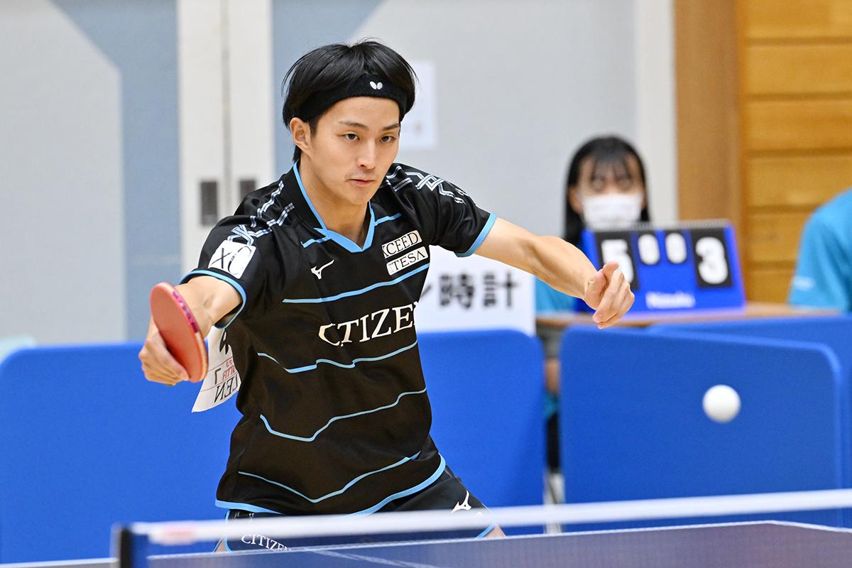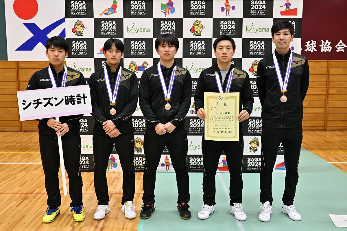 もう一方の3位は、シチズン時計。準決勝の愛知工業大戦では、1番の三部航平、2番の上村慶也がともにゲームオールの大接戦になったがどちらも物にできず、決勝進出はならなかった。