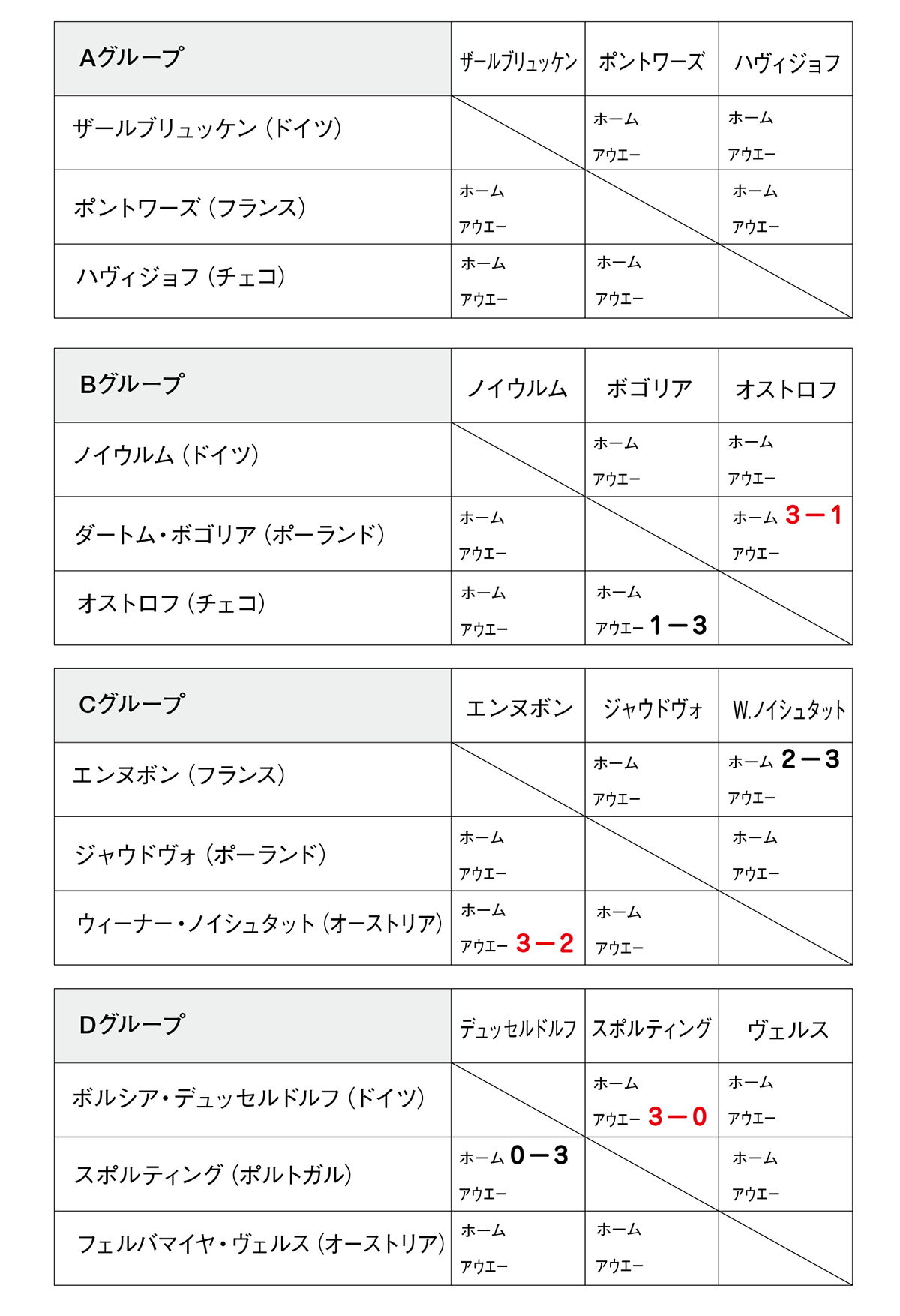 10月23日はスポルティング(ポルトガル)とボルシア・デュッセルドルフ(ドイツ)が対戦し、ボルシア・デュッセルドルフが3-0で勝利した。