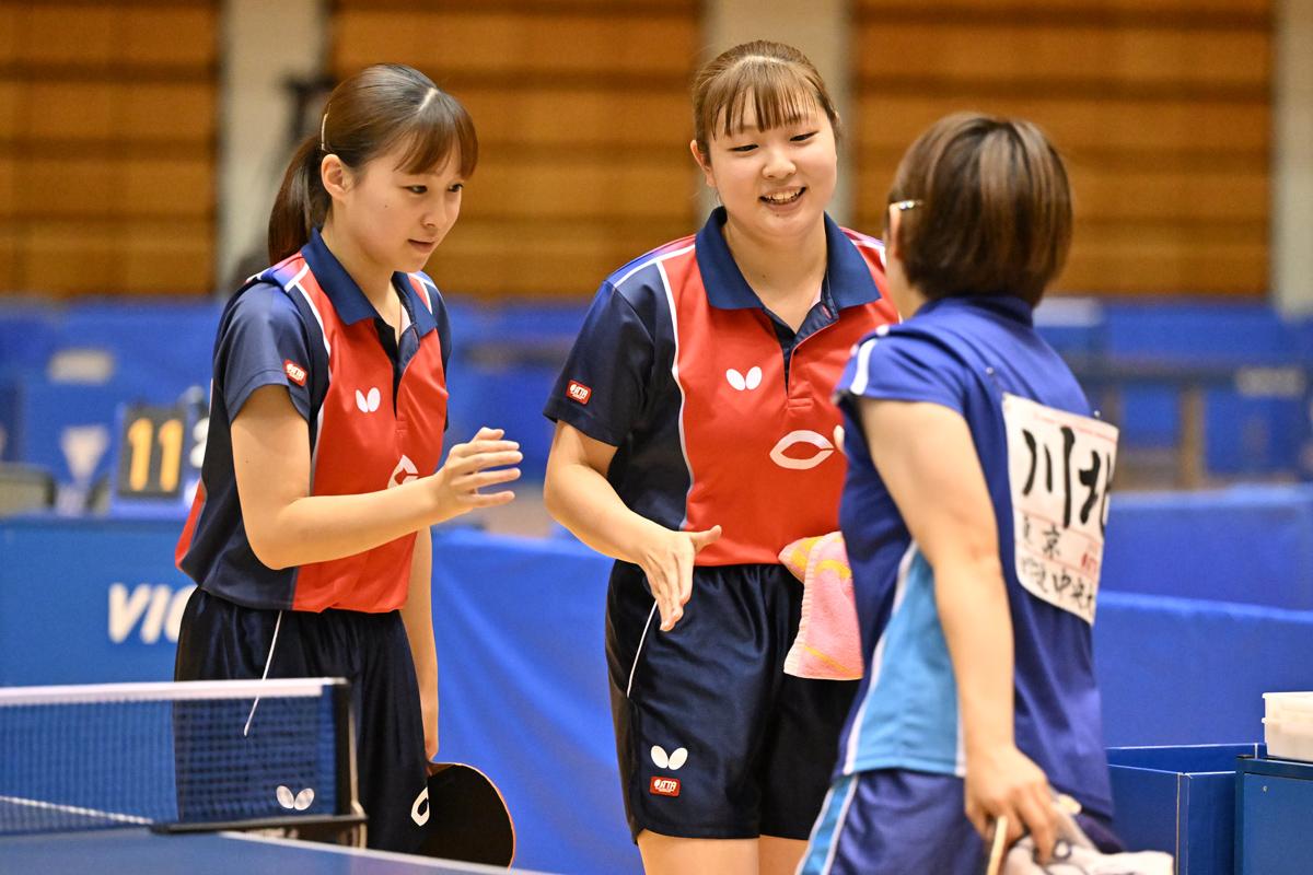 決勝では、川北/髙橋(中央大)の3年生ペアに分があるかと思われたが、カットの吉岡がチャンスをつくり、川畑が決めるパターンに加え、吉岡が中後陣からも威力のあるフォアハンドドライブを放つなど、思い切りの良い攻撃が決まり、先輩ペアを退けて初優勝を果たした。