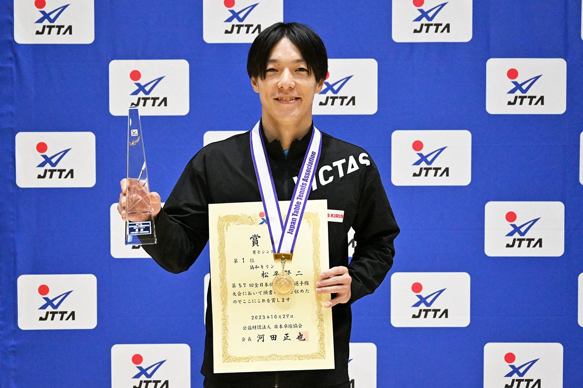 男子シングルスは、松平賢二(協和キリン)が2014年愛知大会以来、9年ぶり2度目の優勝を果たした。
