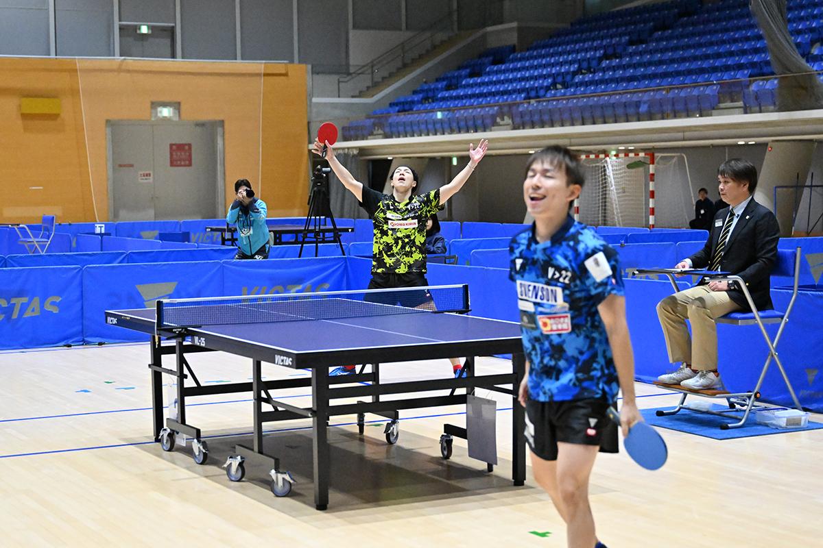 分が悪いと見られていた丹羽孝希(スヴェンソンホールディングス)との決勝では、「我慢できた」という松平が、強引なプレーを控え、丹羽の強力なサービスや緩急にしっかり対応してゲームカウント4対2で勝ちきり、両手を高々と掲げた。