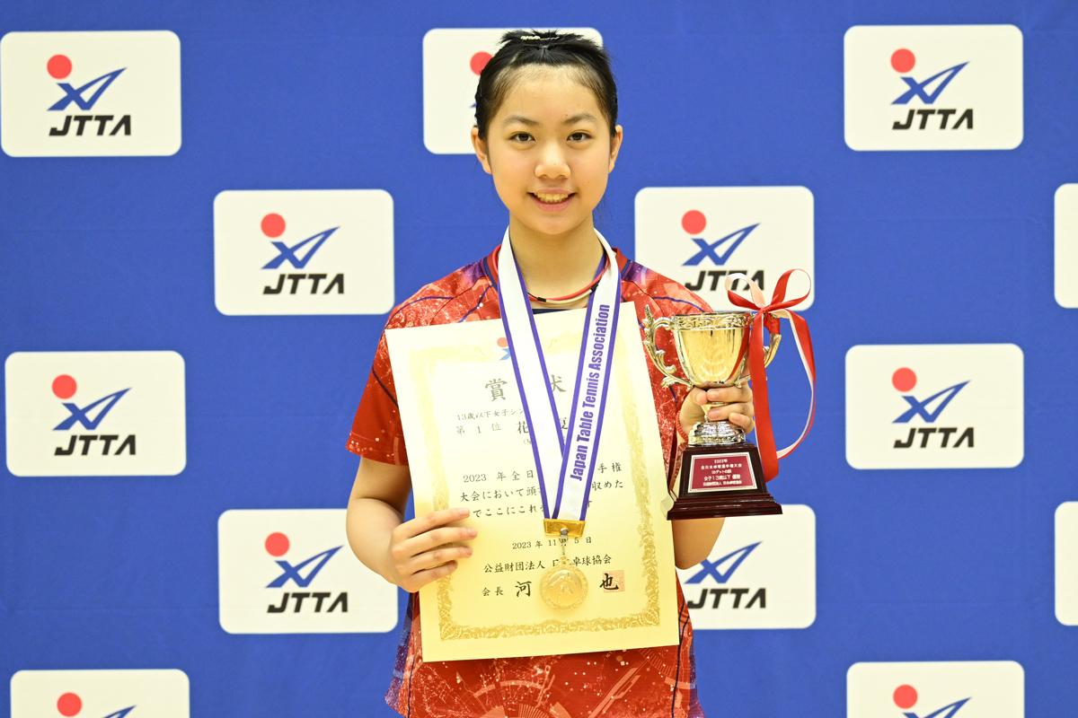 大会最終日はシングルス各種目の5回戦〜決勝が行われ、13歳以下女子シングルスは花沢夏琳(星槎中)が初優勝を飾った。