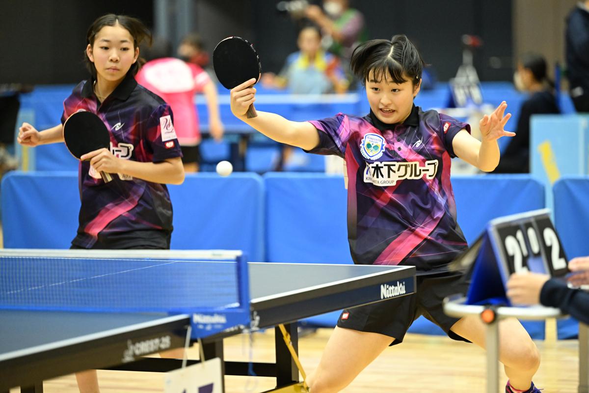 決勝は、サウスポーの異質型、新谷のボールに木下アカデミーペアがうまく対応できずにミキハウスJSCペアが主導権を握る展開。藤本/髙橋も随所で高い攻撃力を見せるが、新谷/渡会を攻略するには至らず、3対0で新谷/渡会が初優勝を決めた。