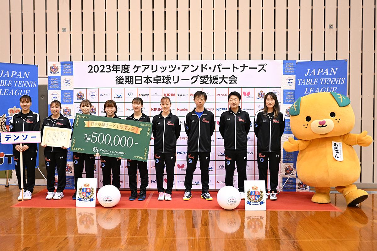 2位はデンソー。前期日本リーグ、全日本実業団、全日本団体と、今年のチーム戦タイトルを総なめにしていたデンソーだったが、初戦のホームマッチで神戸松蔭女子学院大学に敗れると、第6戦でレゾナックに競り負けて2敗目を喫し、優勝の芽がなくなってしまった。