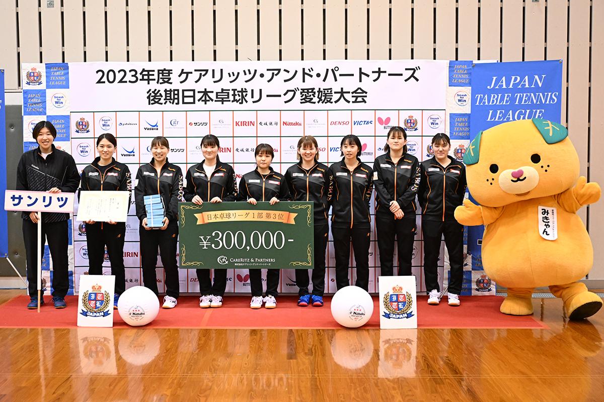 ケアリッツ・アンド・パートナーズ2023年後期日本卓球リーグ愛媛大会が、11月8〜12日まで、愛媛県の愛媛県総合運動公園体育館で開催。