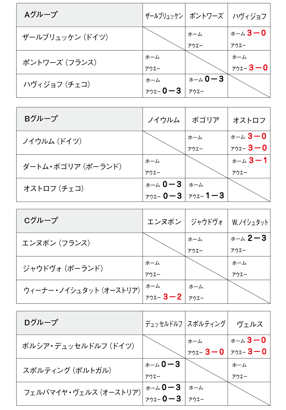 次の試合は本日11月21日。フェルバマイヤ・ヴェルス(オーストリア)とスポルティング(ポルトガル)が対戦する。