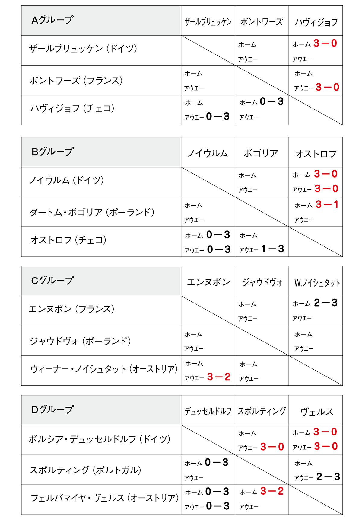 11月21日はフェルバマイヤ・ヴェルス(オーストリア)とスポルティング(ポルトガル)が対戦し、フェルバマイヤ・ヴェルスが3-2で勝利した。