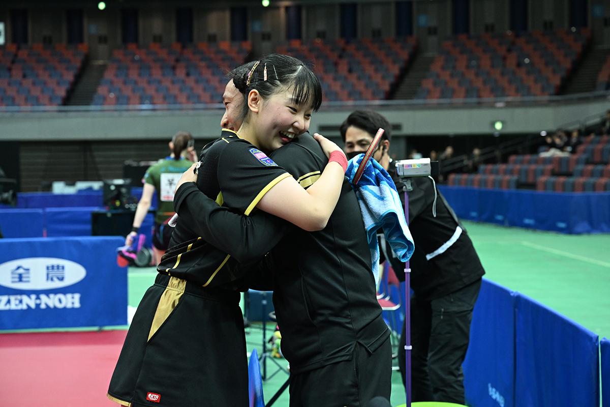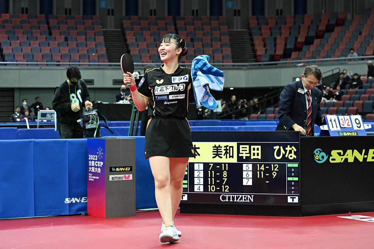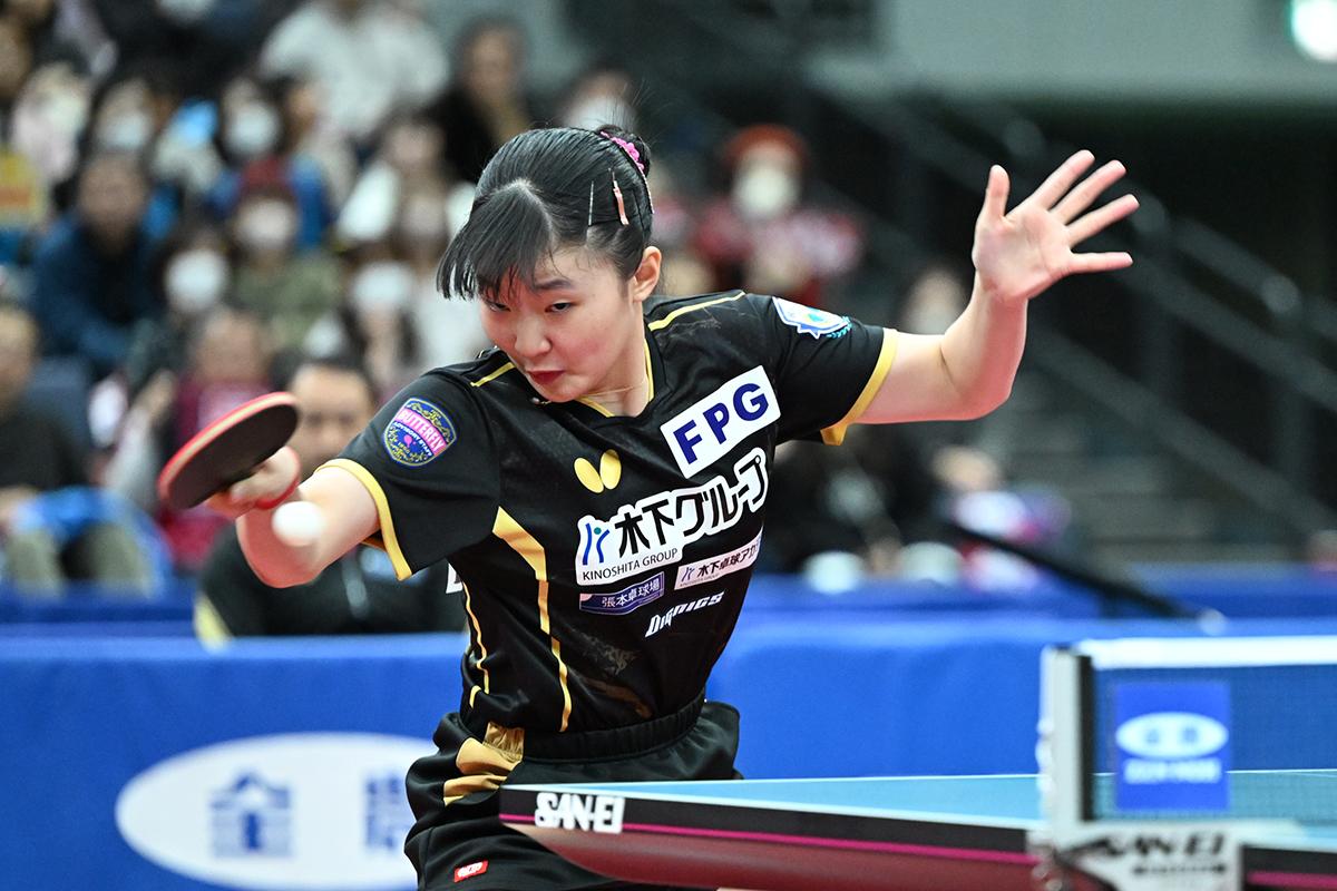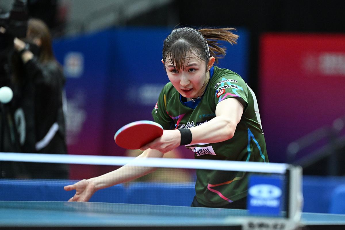 準決勝で長﨑美柚(木下グループ)との同士打ちを制すと、決勝ではパリ五輪選考レースを独走する早田ひな(日本生命)と対戦。