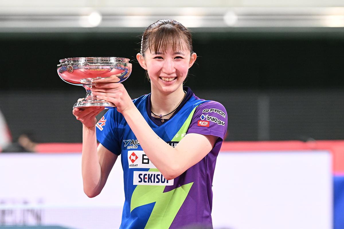 第1ブロックの本命は、連覇がかかる早田ひな(日本生命)だ。群雄割拠の日本女子にあって、圧倒的な強さで2024年パリオリンピックの選考レースを勝ち抜いた早田は、世界ランキングも日本選手1番手となる5位まで上げて今大会に臨む(2024年第3週の世界ランキング)。女子離れした球威という得がたいアドバンテージに加え、その安定感や技の多彩さ、気持ちの強さをハイレベルで兼ね備えた早田を倒すのは容易ではないだろう。昨年末に行われたWTT女子ファイナルズ2023名古屋で最強中国の大黒柱・陳夢(中国)をあと一歩まで追い詰めたプレーも記憶に新しく、早田が第1ブロックの、ひいては女子シングルスの本命であることは間違いない。