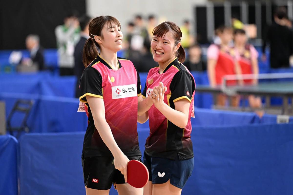 ※写真は女子ダブルスの麻生麗名/笹尾明日香(日本生命)