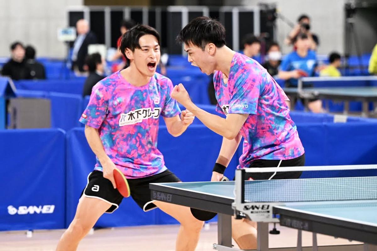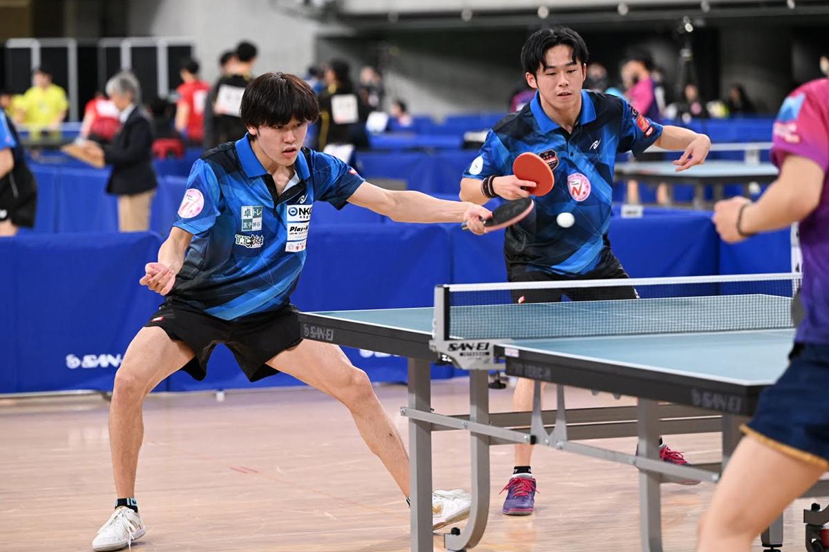 前回2位の及川瑞基/松島輝空(木下グループ/木下アカデミー)も準決勝に勝ち残った。5回戦では2022年優勝の戸上隼輔/宇田幸矢(明治大)、準々決勝では篠塚大登/鈴木颯(愛知工業大)と強敵との対戦が続いたが、ジュニア男子を制した松島が非凡な両ハンドでチャンスメイクし、及川がしっかり続く連係で勝ちきった。