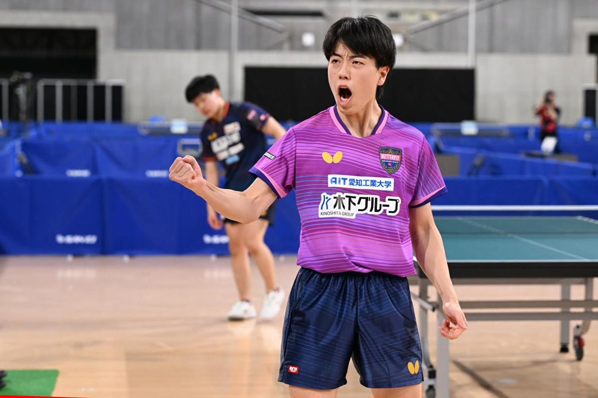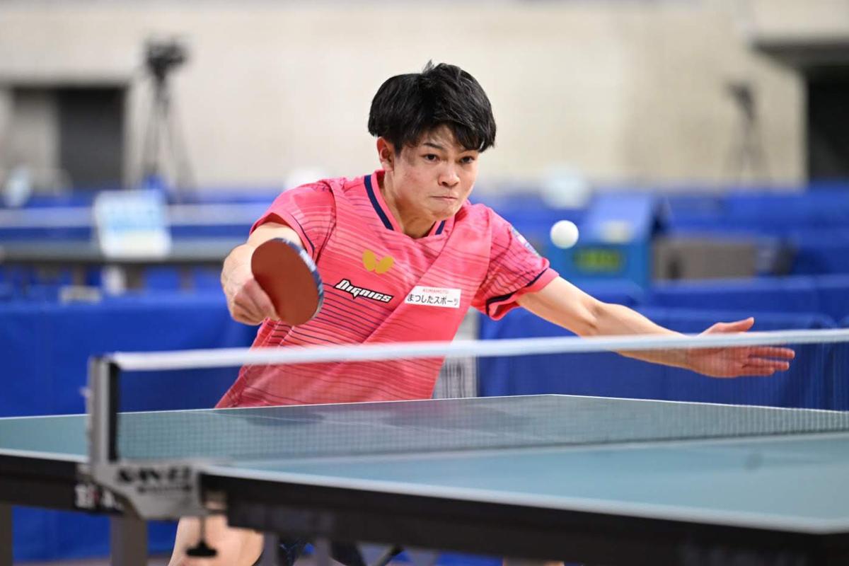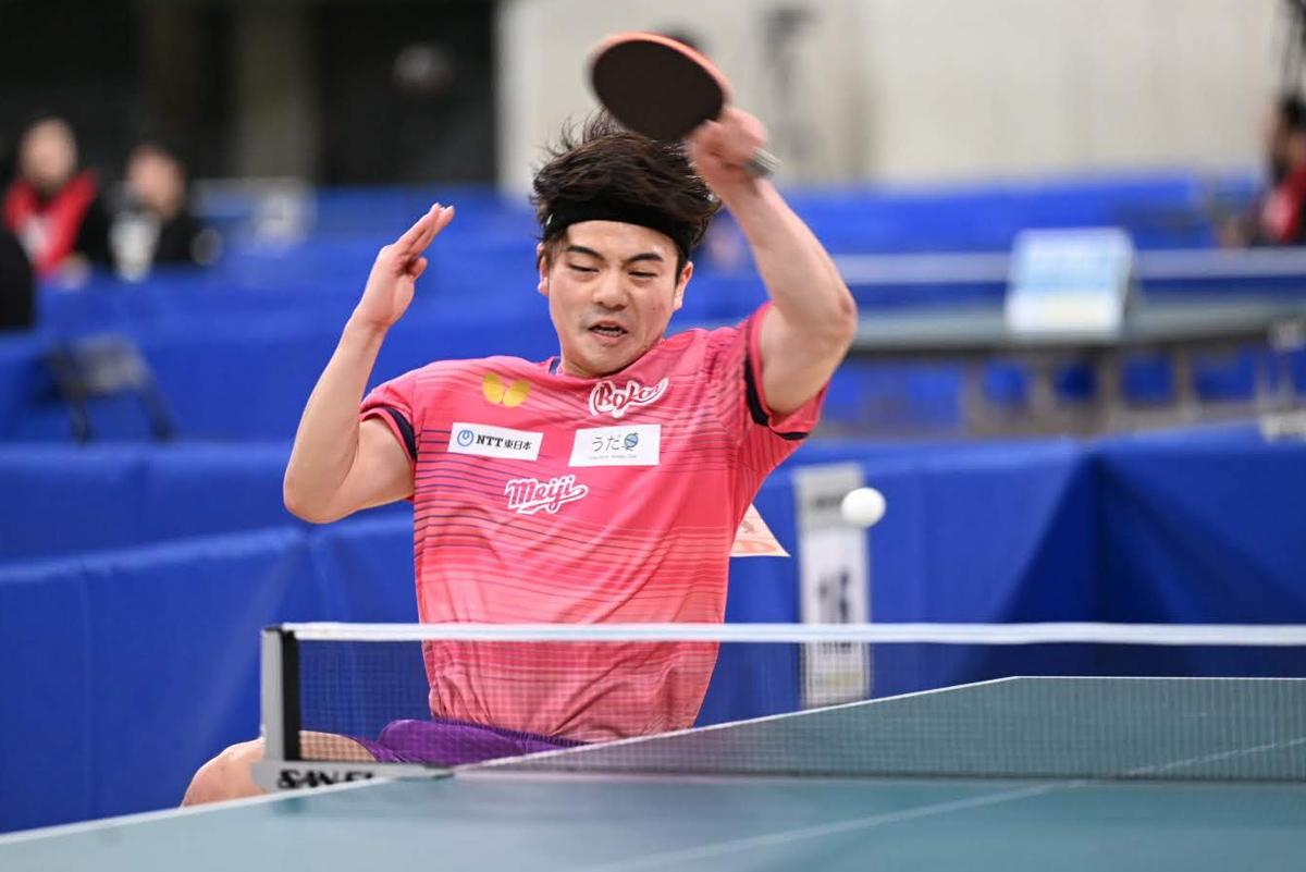 パリ五輪の選考ポイントでも上位につけている田中佑汰(個人)は、6回戦で後輩の横谷晟(愛知工業大)と対戦。リスクを承知で振ってきた後輩の横谷に対して、田中は前陣での堅守とカウンターで応戦し、4対2で2年連続のベスト8入りを決めた。