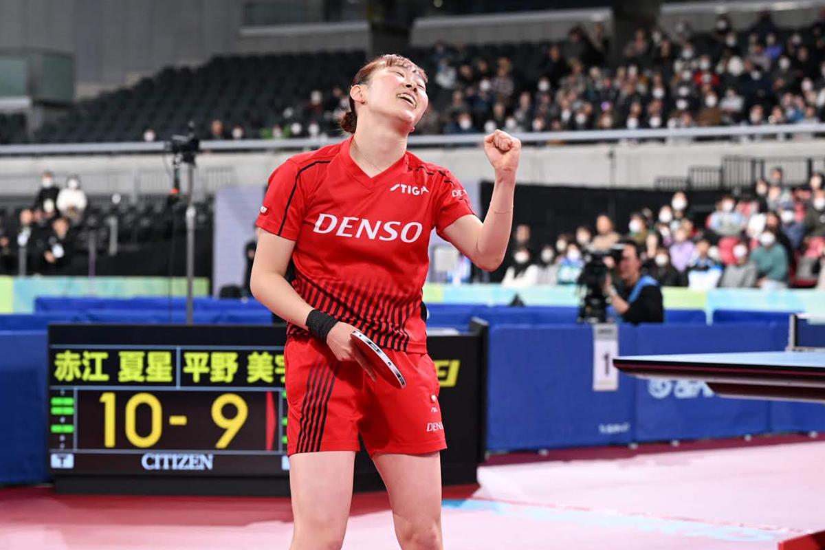 ※写真は平野美宇(木下グループ)を下してベスト4に勝ち残った赤江夏星(デンソー)