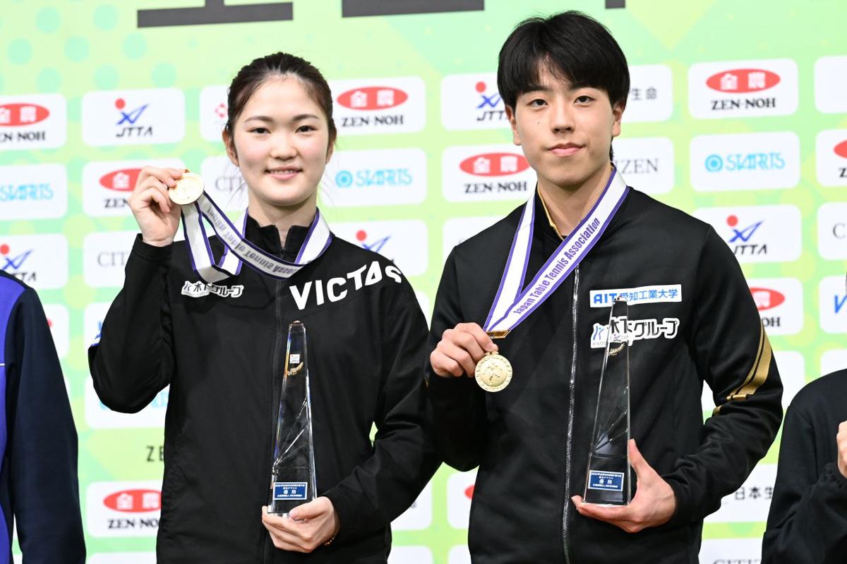 大会6日目は混合ダブルス準々決勝〜決勝が行われ、篠塚大登/木原美悠(愛知工業大/木下グループ)が初の栄冠に輝いた。