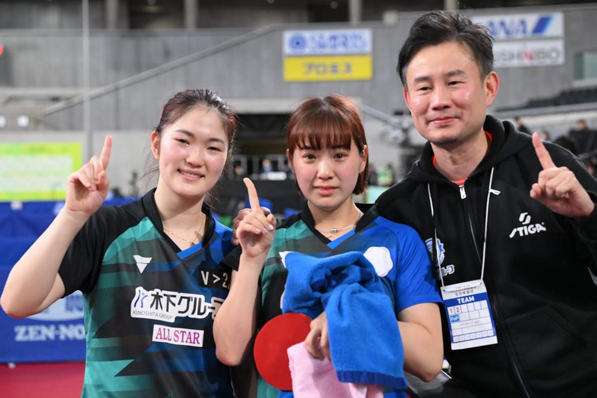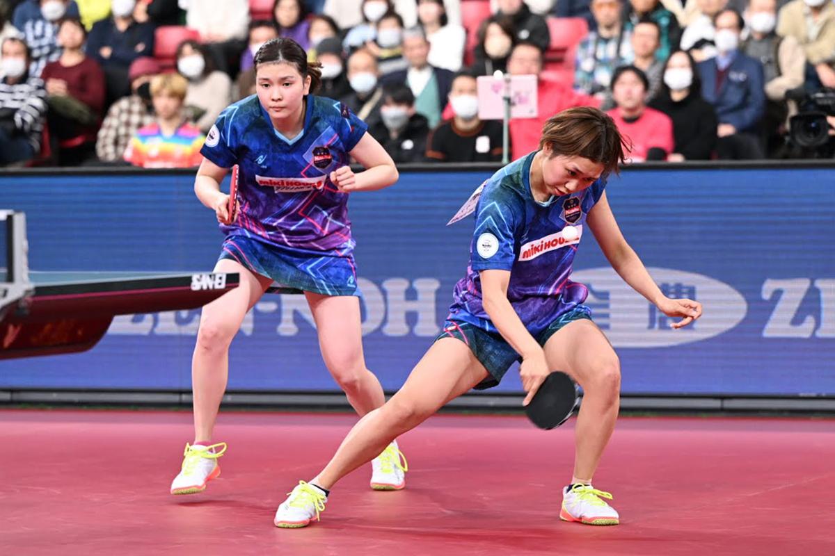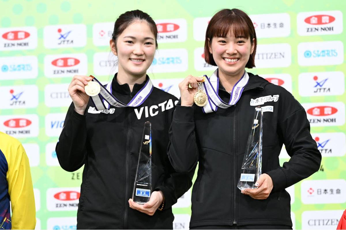 3位には、前回3位で力強い両ハンドの連係が魅力の芝田沙季/大藤沙月(ミキハウス)と、カットと攻撃の変則プレーで勝ち上がった加藤亜実/小島叶愛(十六フィナンシャルグループ)が入った。