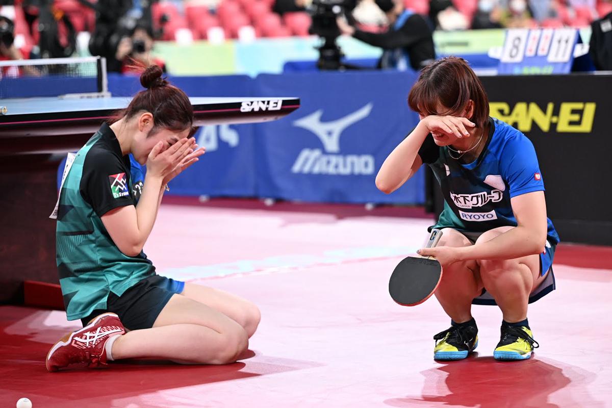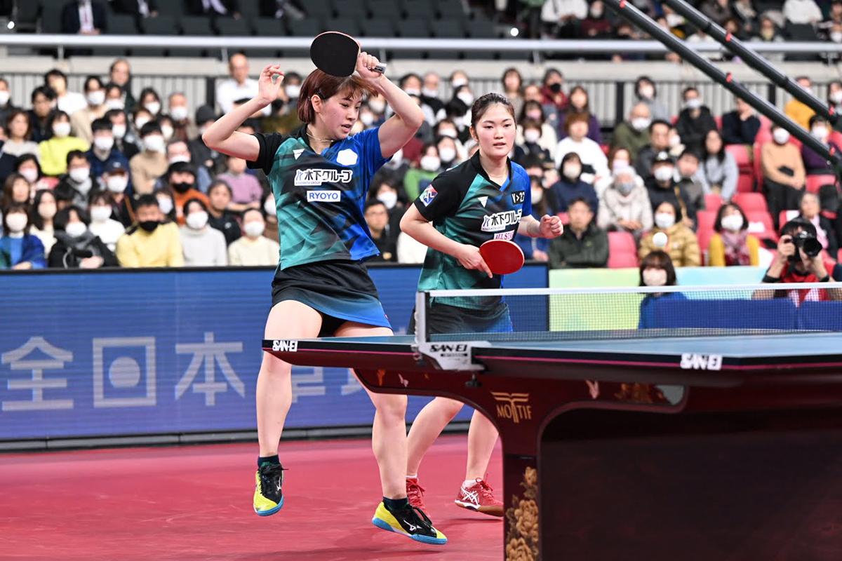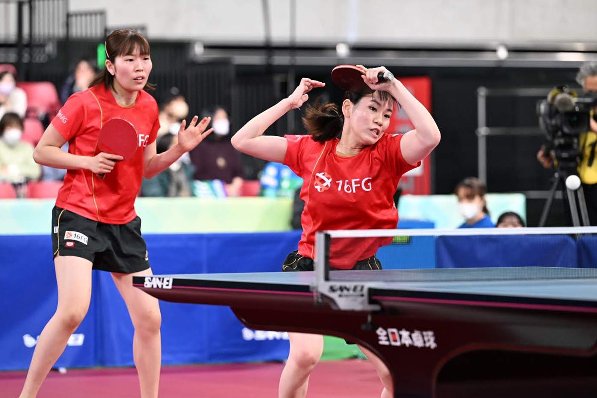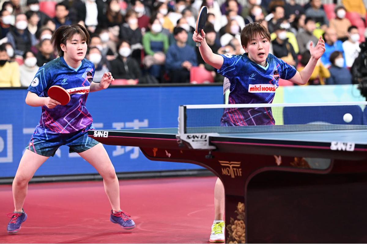 3位には、前回3位で力強い両ハンドの連係が魅力の芝田沙季/大藤沙月(ミキハウス)と、カットと攻撃の変則プレーで勝ち上がった加藤亜実/小島叶愛(十六フィナンシャルグループ)が入った。