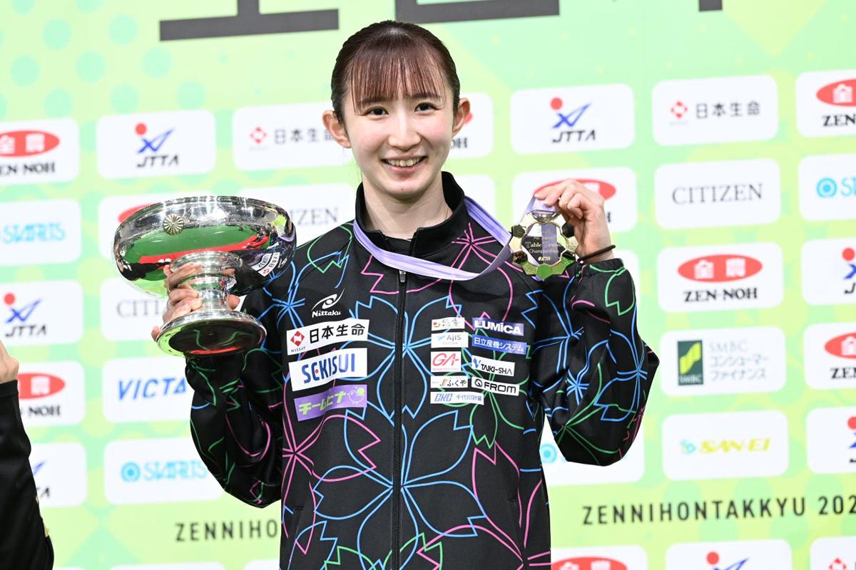 2位の張本は、「早田選手の壁を壊せなかったのは、まだまだ自分に足りないところがたくさんあったなと実感しました。やっぱり1ゲーム目を取れなかったことが1番大きいし、取ったら何か変わったかもしれない。取ったとして、そのまま4ゲームを取られたかもしれないですけど、やっぱり1ゲームも取れなかったというのは今となっては悔しいです」と振り返るように、第1ゲームを逆転で失い、流れも失ってしまった。ジュニア女子に続く二冠、そして、2017年に平野美宇がつくった16歳9カ月という史上最年少優勝記録を塗り替えることはかなわなかったが、堂々たるプレーで決勝まで勝ち上がり、あらためて力を示した。