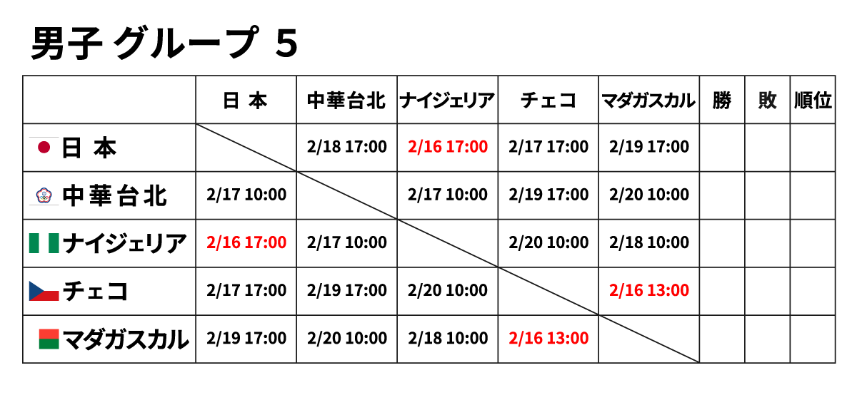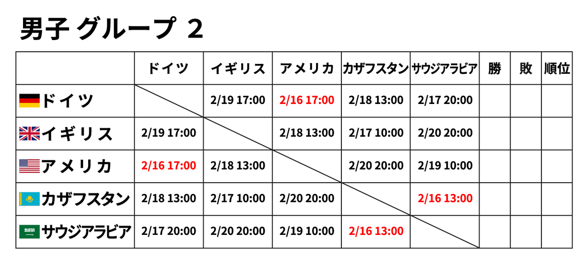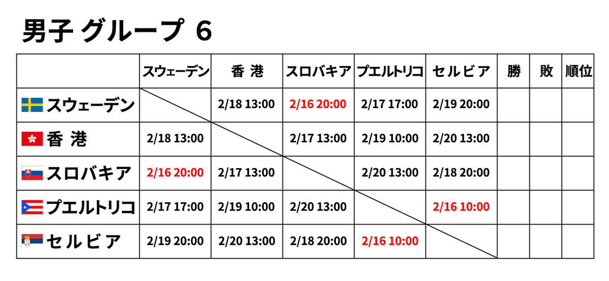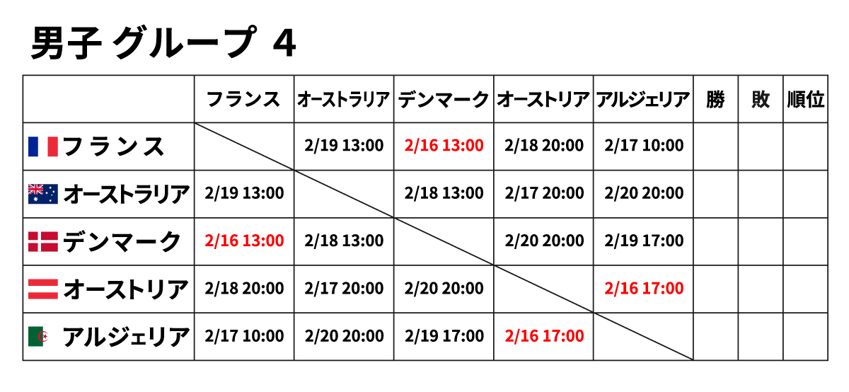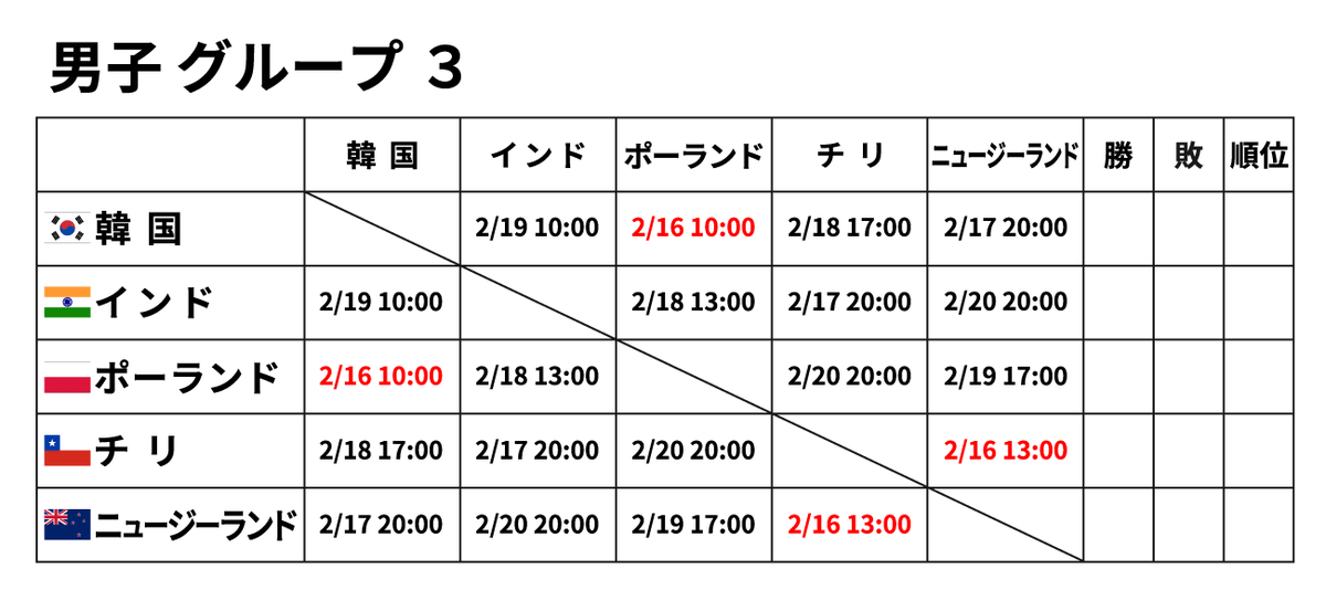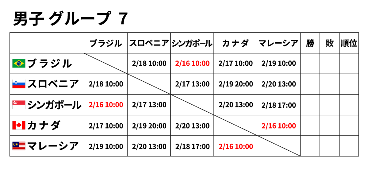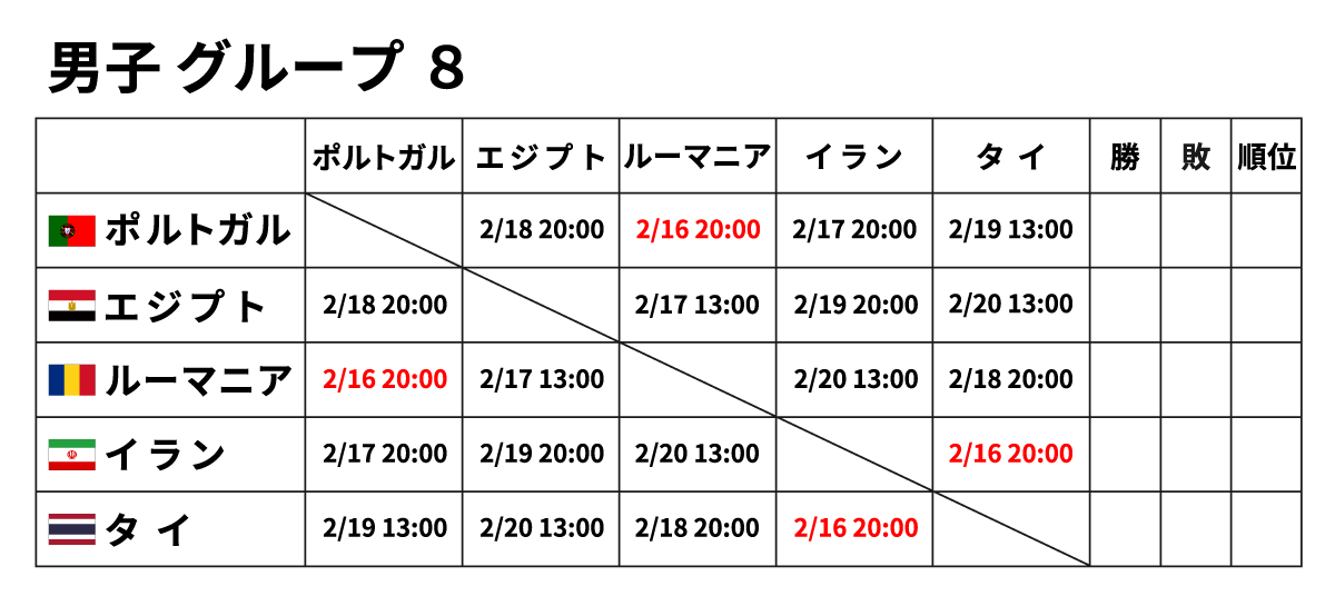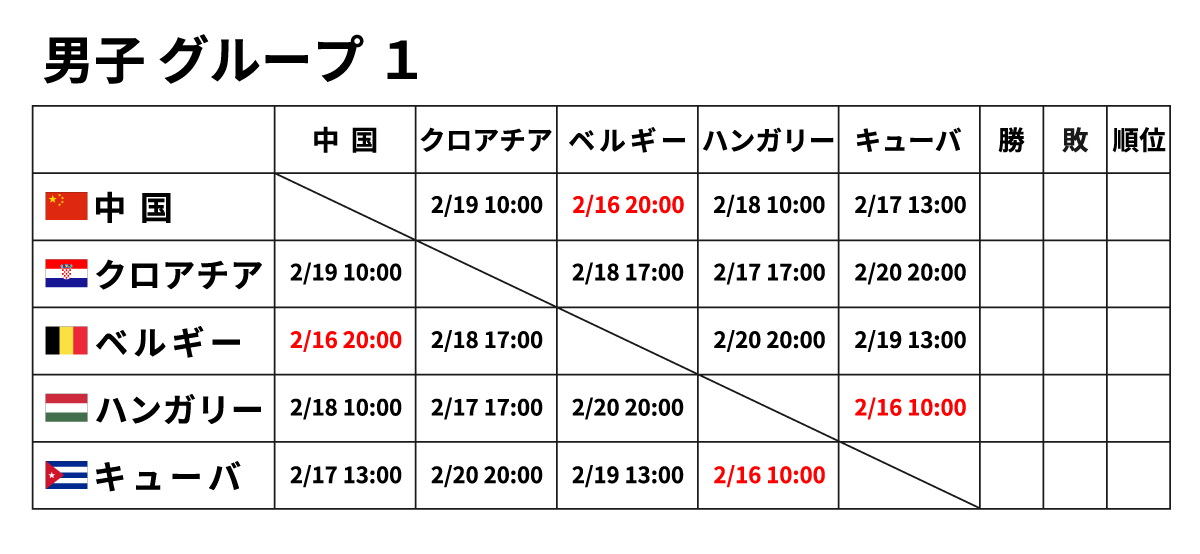 ■男子団体 2月16日(金) ※赤字が2/16に行われる試合