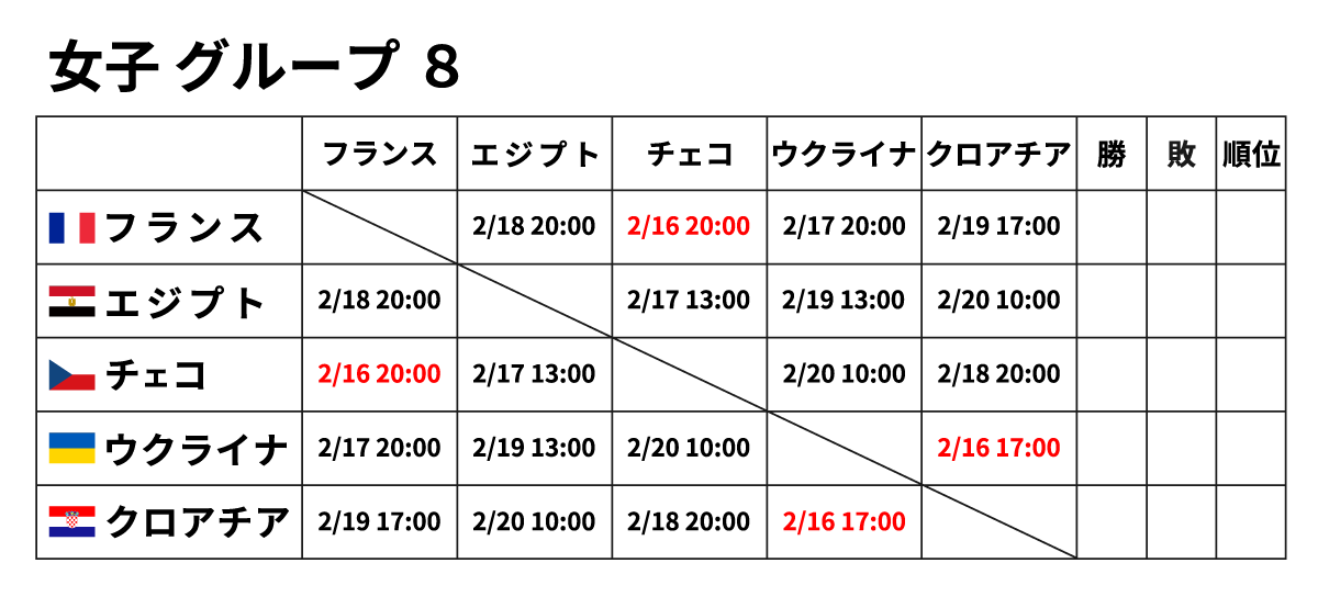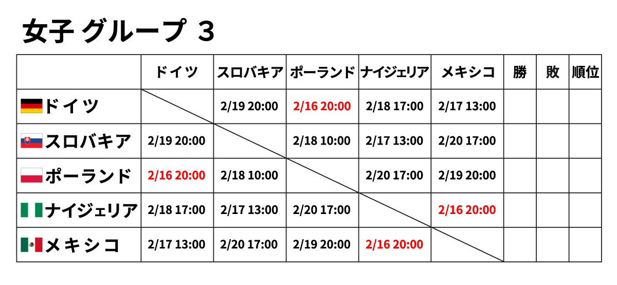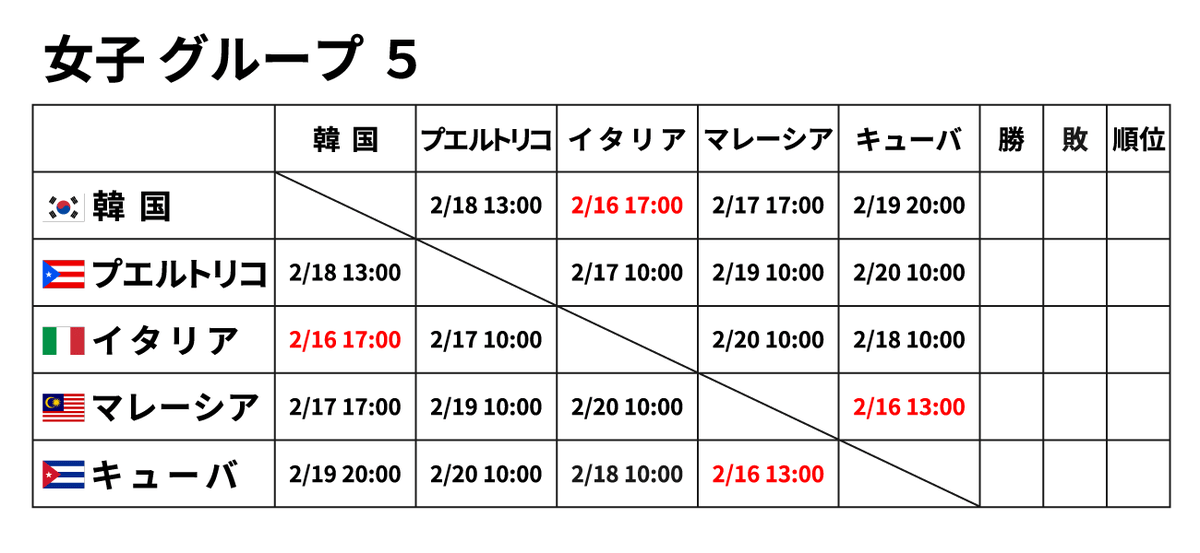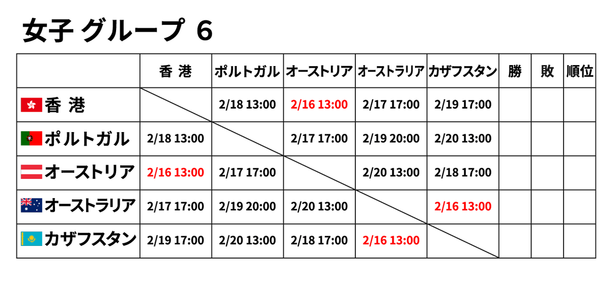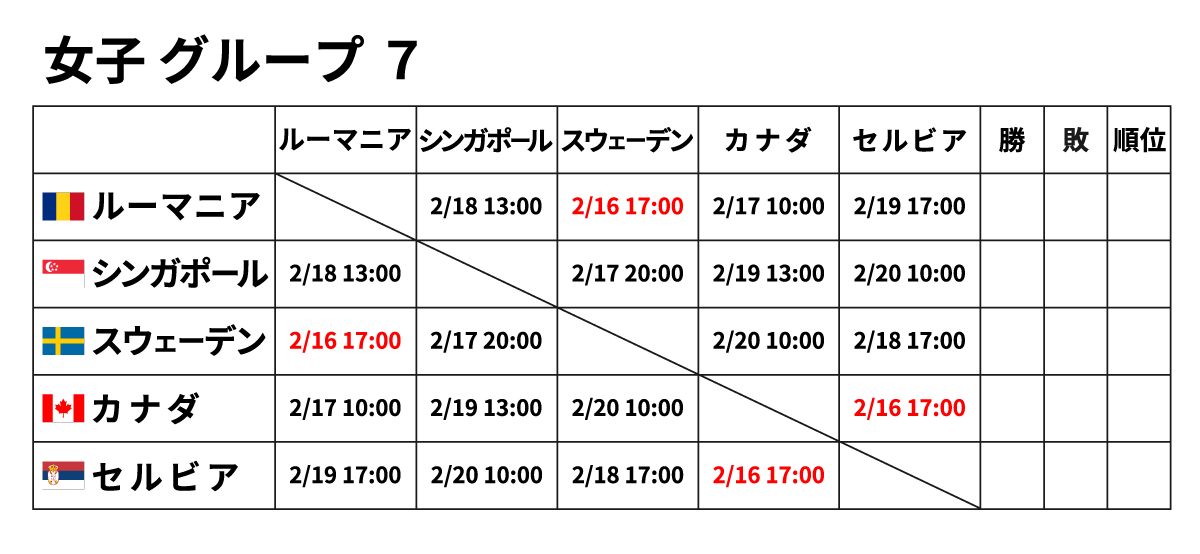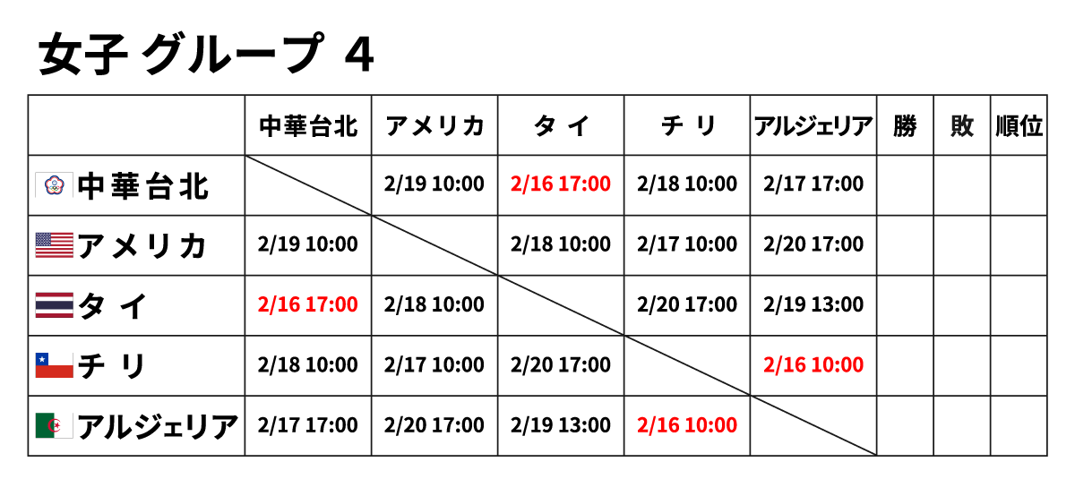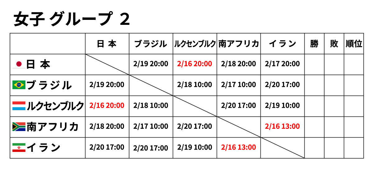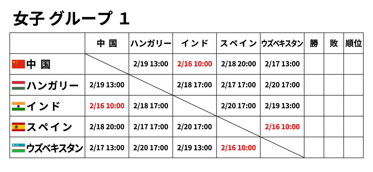■女子団体 2月16日(金) ※赤字が2/16に行われる試合
