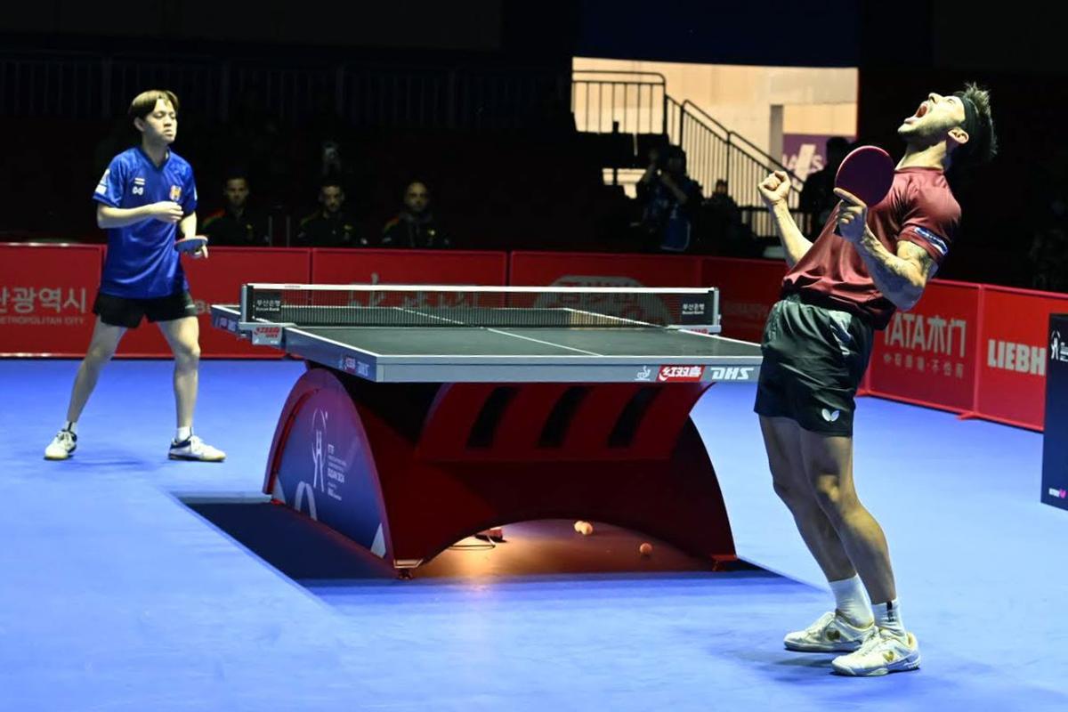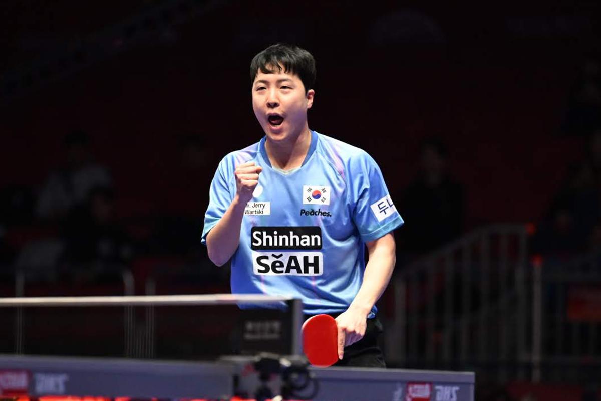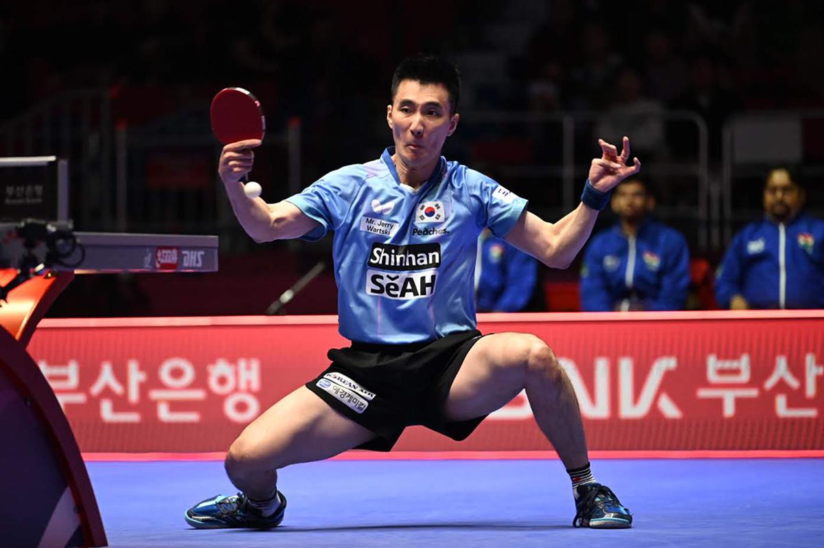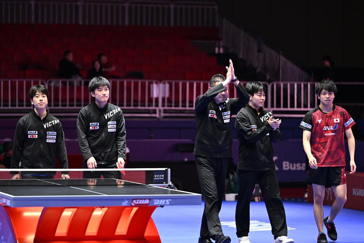 韓国がインドにストレート勝利。トップで張禹珍がエース起用のデサイにストレートで快勝すると、2番で林鐘勳もグナナセカランの堅陣を強打で打ち破って続き、王手をかける。3番は李尚洙がアチャンタとのベテラン対決を鋭い両ハンドで制し、4戦全勝でグループリーグ首位通過を確定させた。