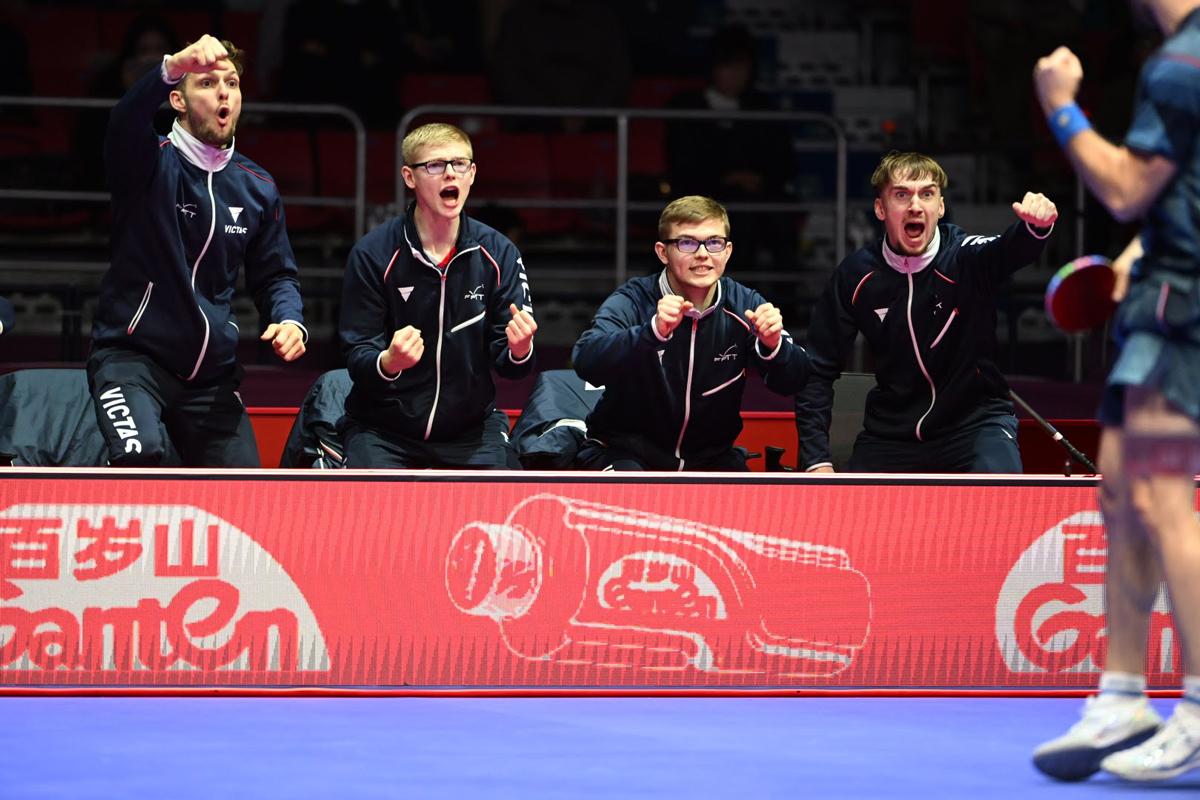 世界卓球初のメダルを狙うポルトガルと1997年マンチェスター大会以来の表彰台を目指すフランスとのヨーロッパ対決はフランスに軍配が挙がった。