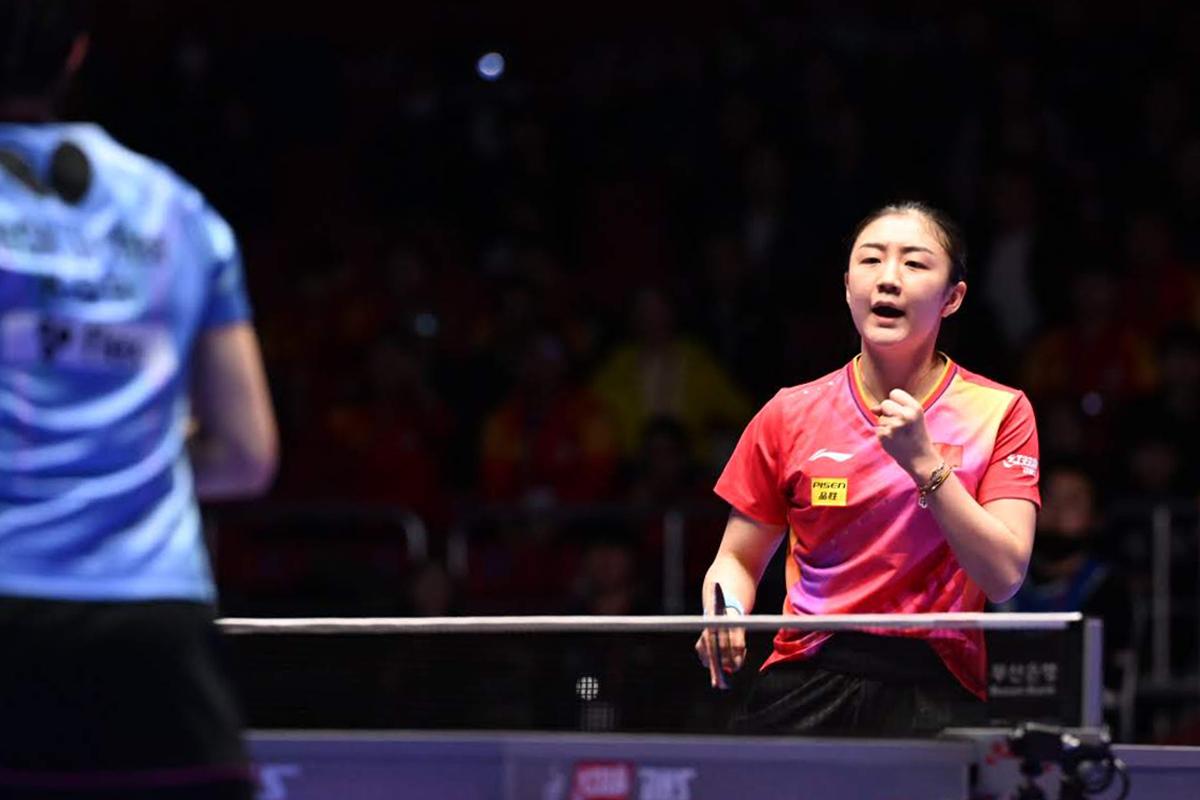 トップで孫穎莎がスタートから8-0と猛攻を仕掛けて李シオンの戦意をくじくと、そのまま大きく引き離して中国が先制する。2番の陳夢も田志希の鋭い攻撃にしっかり対応して中国が勝利に王手。