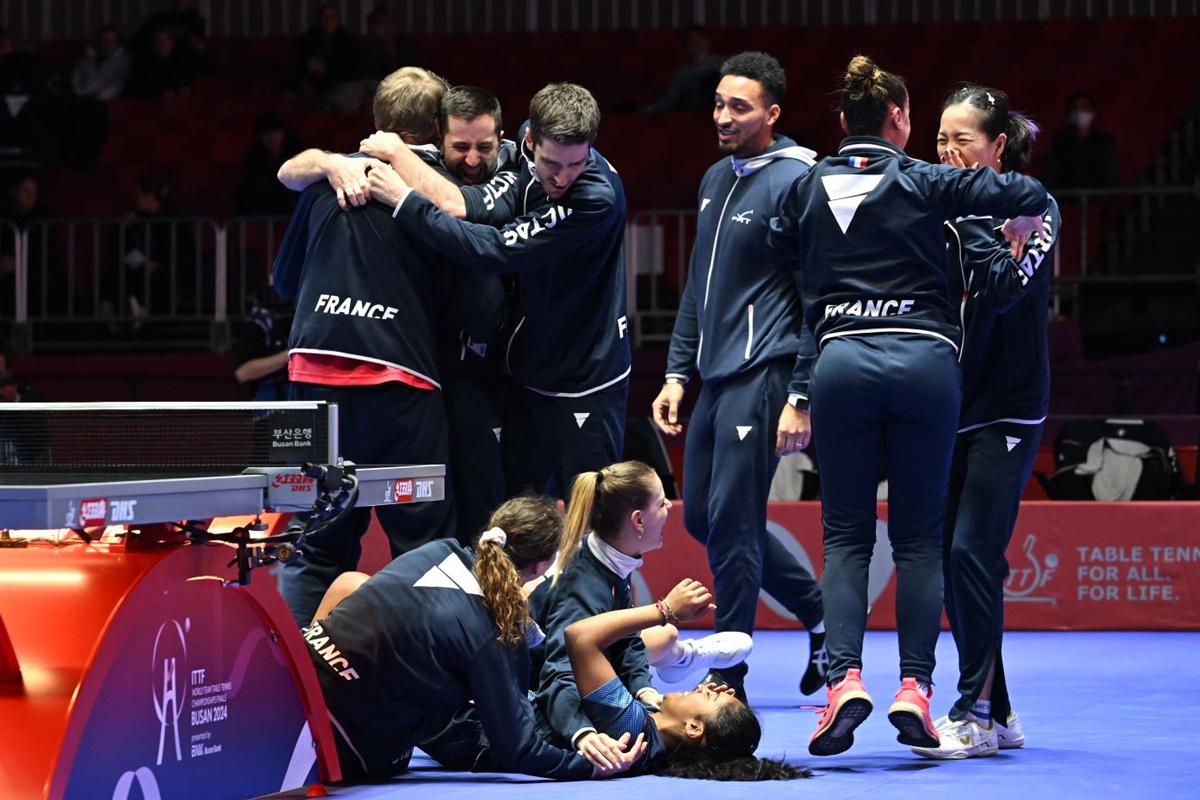 4番のエース対決はミッテルハムがフォアハンド強打でユアン・ジアナンを退けるも、ラストでパバドが両ハンドの連続攻撃でシャンの堅陣を打ち抜いてフランスが勝利。フランス女子は1991年千葉大会以来、33年ぶりのメダル確定となった。