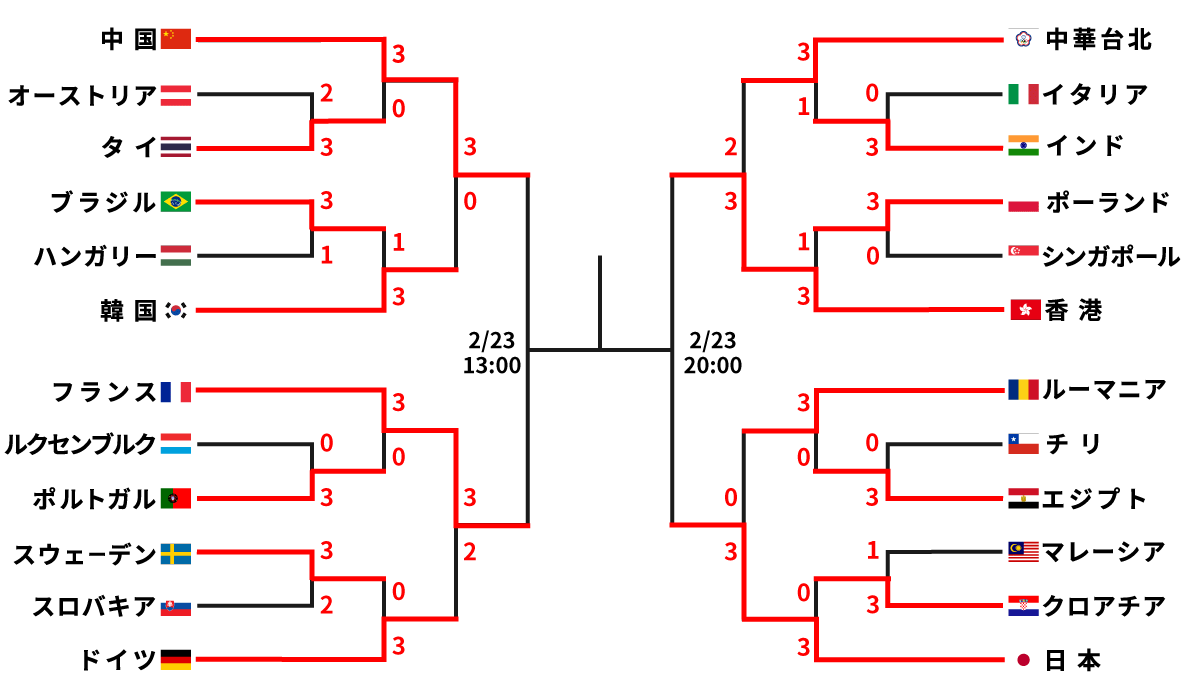 13時00分〜 決勝トーナメント準決勝 中国 対 フランス