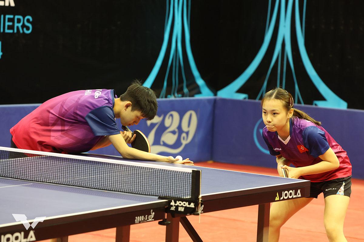 写真はU19優勝の王昀希/黄凱彤(香港)。WTTユースコンテンダー チュニスに続いて優勝