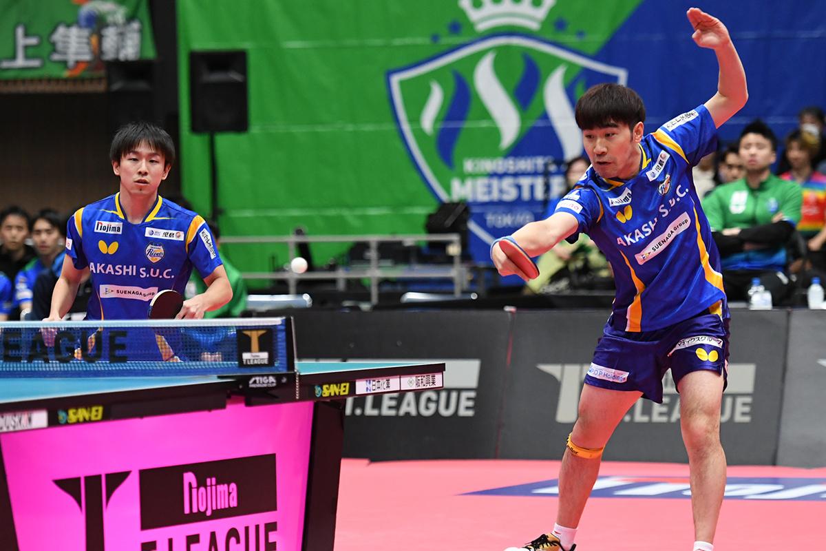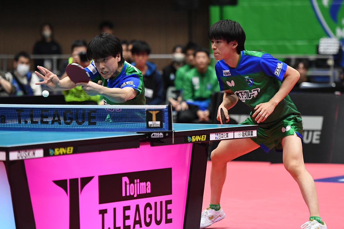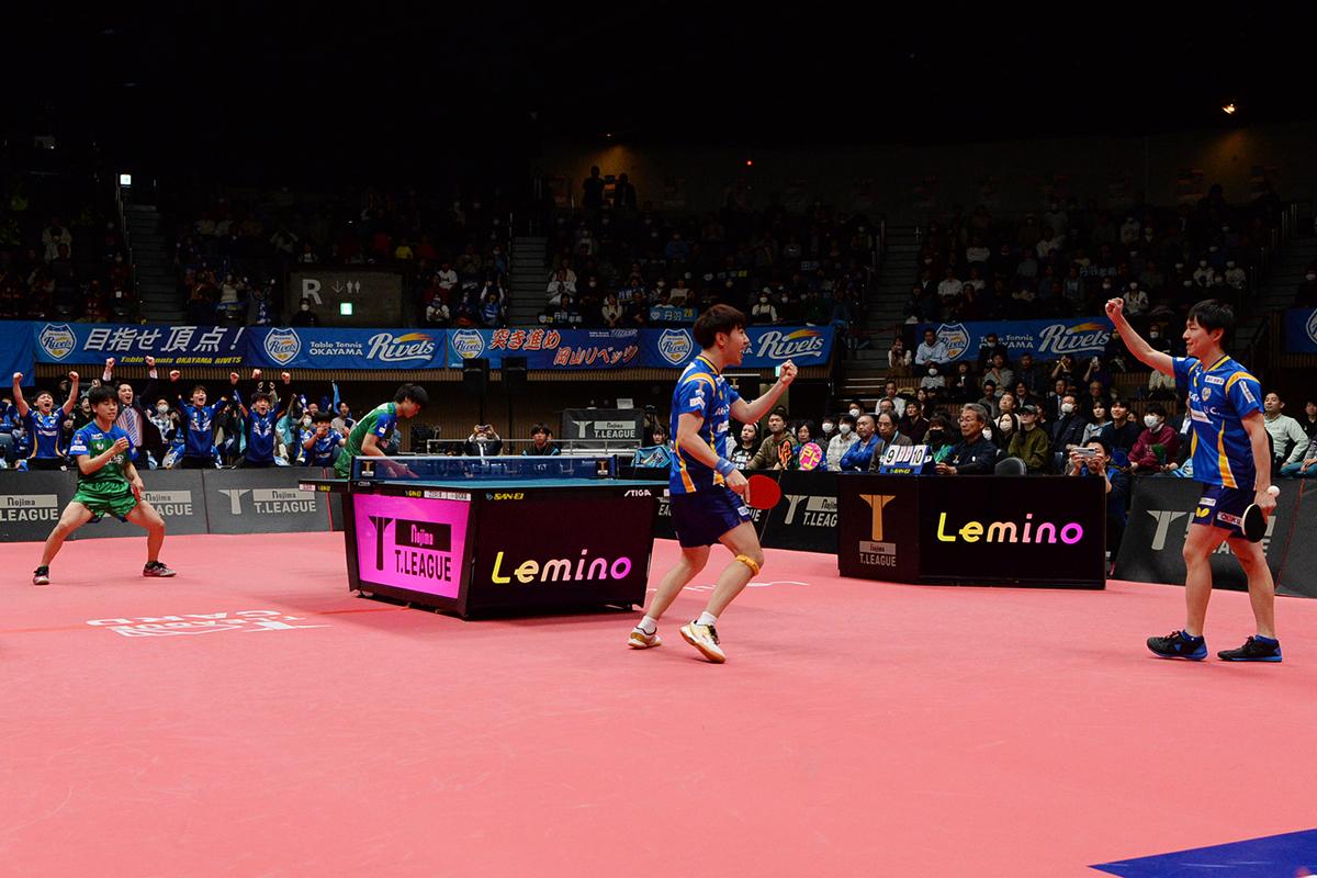 1番ダブルス 岡山リベッツの丹羽/閻安がオリンピックペアに競り勝つ