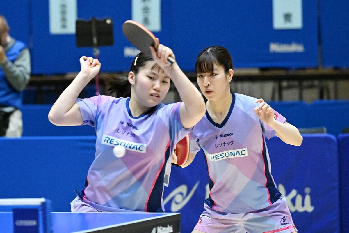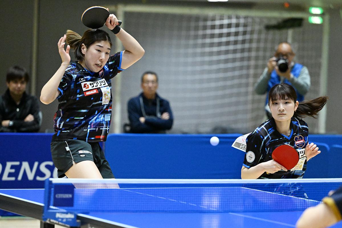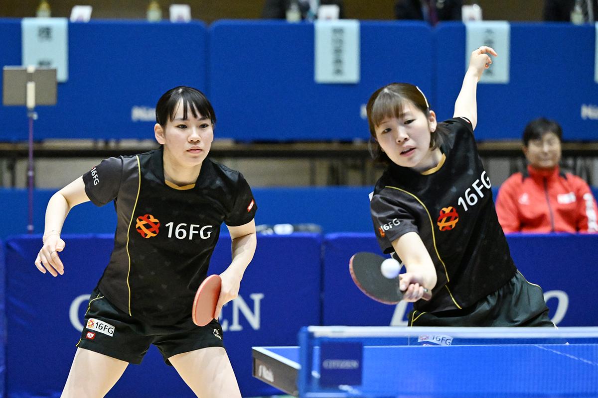 女子ダブルスは井/中森が制した。組んで間もないということもあり、準々決勝、準決勝はいずれも0対2とリードを許す展開になったが、見事に立て直して決勝まで進出すると、決勝でも第1ゲームを奪われたが、そこから二人の両ハンドががっちりかみ合って優勝へと突っ走った。中森は、青木優佳と組んで2022年に優勝して以来、2度目のビッグトーナメントのダブルスタイトル獲得となった。